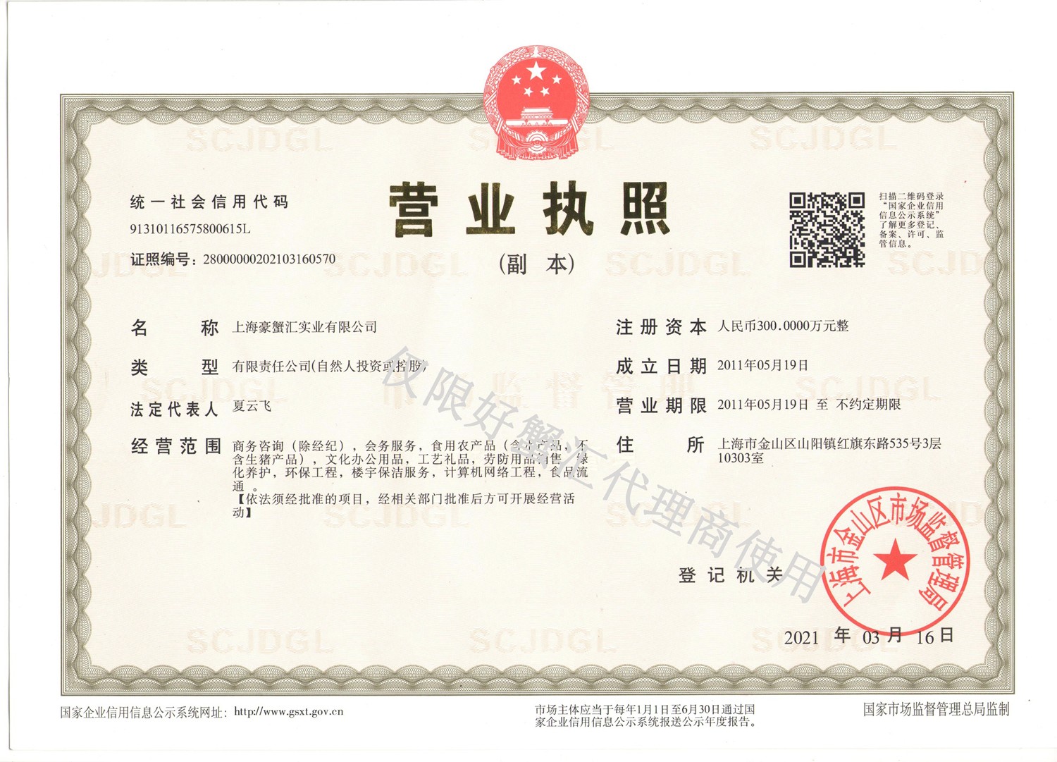 好蟹匯隸屬于上海豪蟹匯實業有限公司,是著名的陽澄湖大閘蟹品牌,擁有19年的養蟹、售蟹經驗。歷年來,好蟹匯陽澄湖大閘蟹通過培植水草凈化水質、增加溶氧,投施魚蝦、螺蛽作為天然鉺料,培育最正宗的長江區系中華絨螯蟹,方能成就好蟹匯品質,實體店以蘇州為中心遍布北、上、廣等50多個主要城市,始終堅持誠信、誠實、誠意、誠懇的四誠經營理 念以及顧客至上的服務理念!