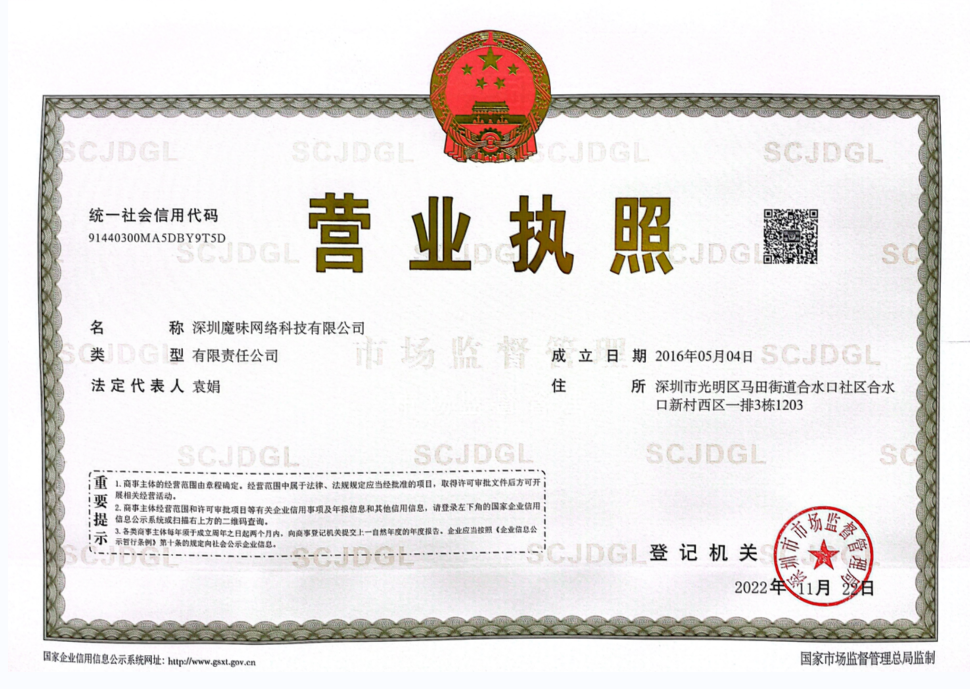 - 經營范圍:深圳魔味網絡科技有限公司,成立于2016年,位于廣東省深圳,是一家以從事軟件和信息技術服務為主的企業