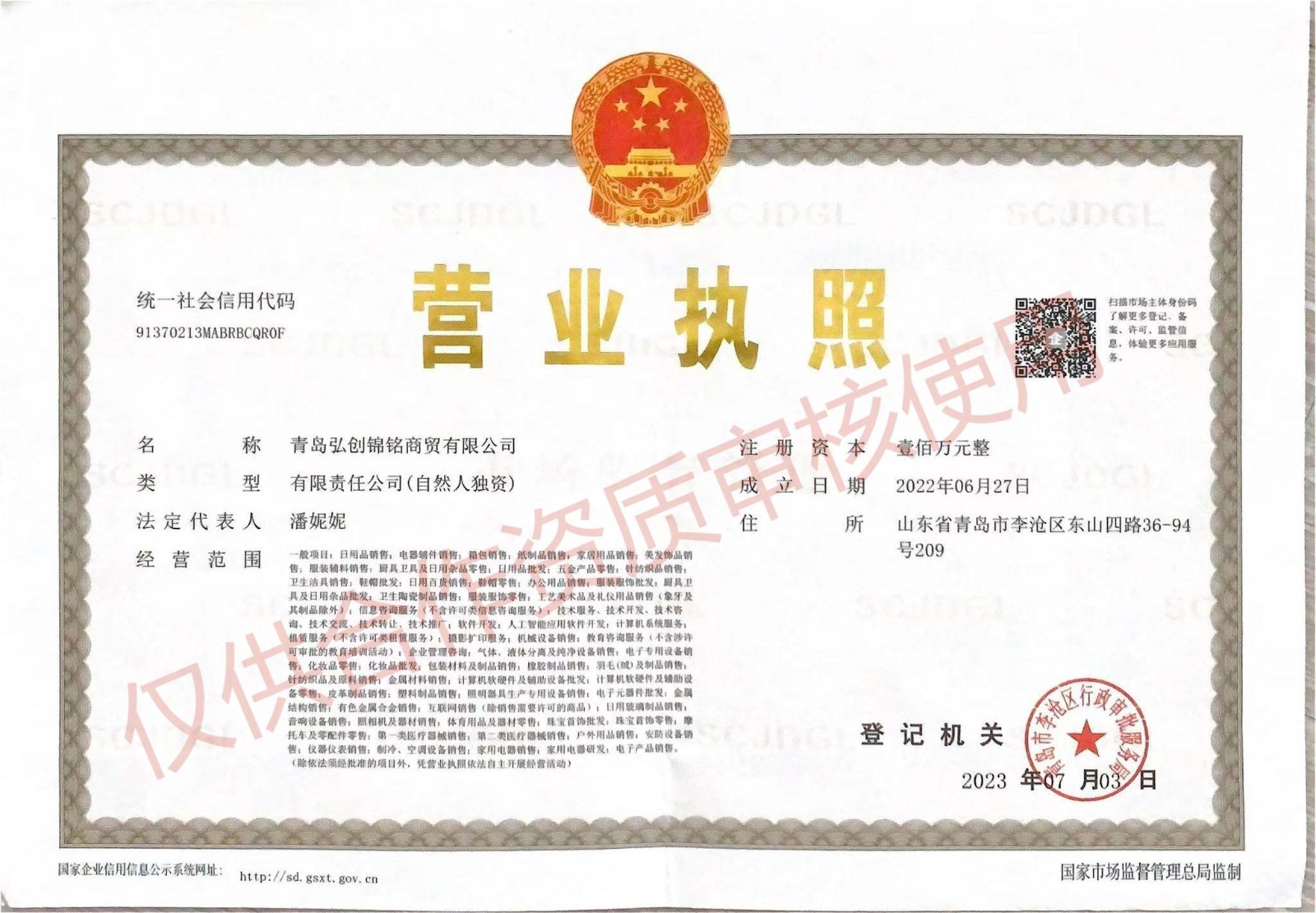 - 營業執照: