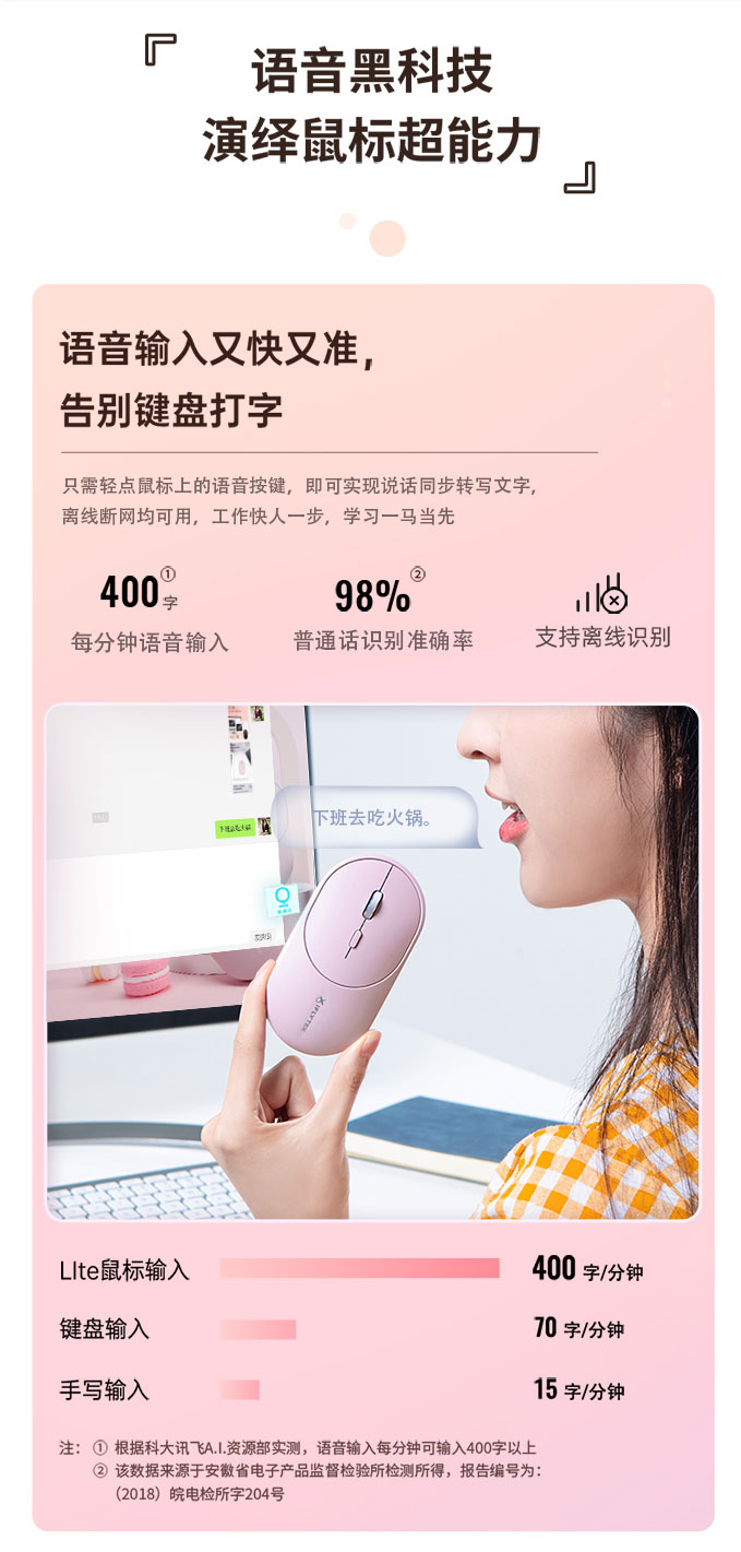 智能語音無線鼠標M320 黑色 白色 綠色 粉色