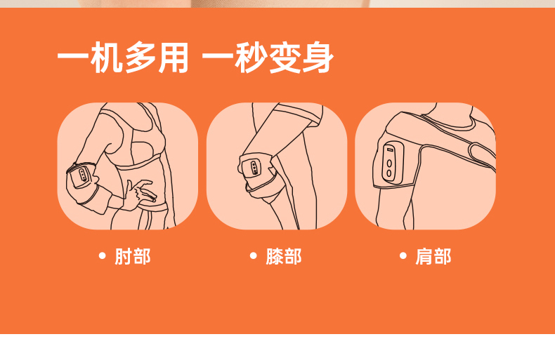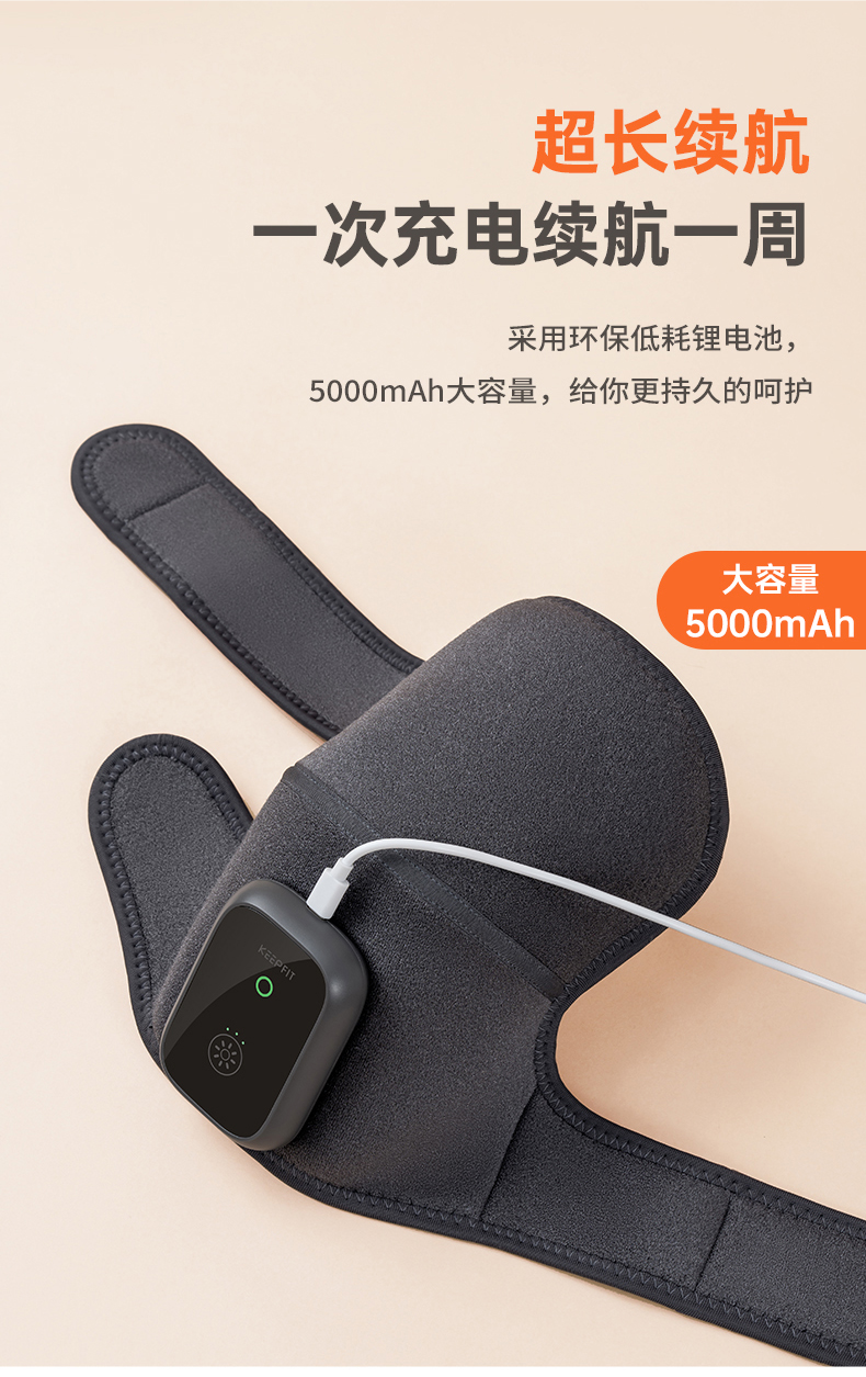1.肩部,膝蓋,手肘都可用(一機三用)有配1根延長帶 2.觸屏設計,震動+熱敷 3.對扣設計,粗細腿型都能用 4.電池容量5000毫安,每天用一次可用7天 5.3檔溫度調節,3種按摩模式,溫度:45℃/50℃/65℃ 6.配合艾草養護,實現無明火艾熏,促進血液循環,對關節炎,老寒腿等膝蓋問題有非常好的效果。