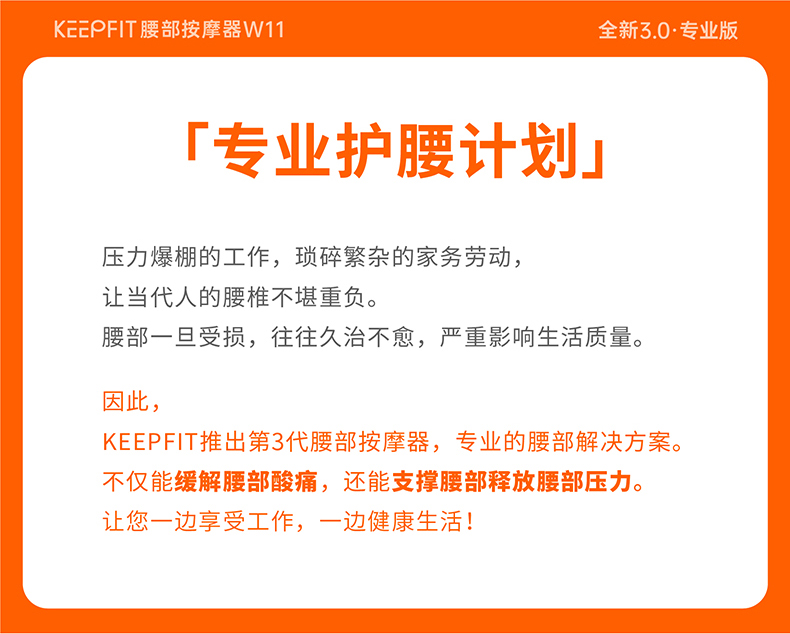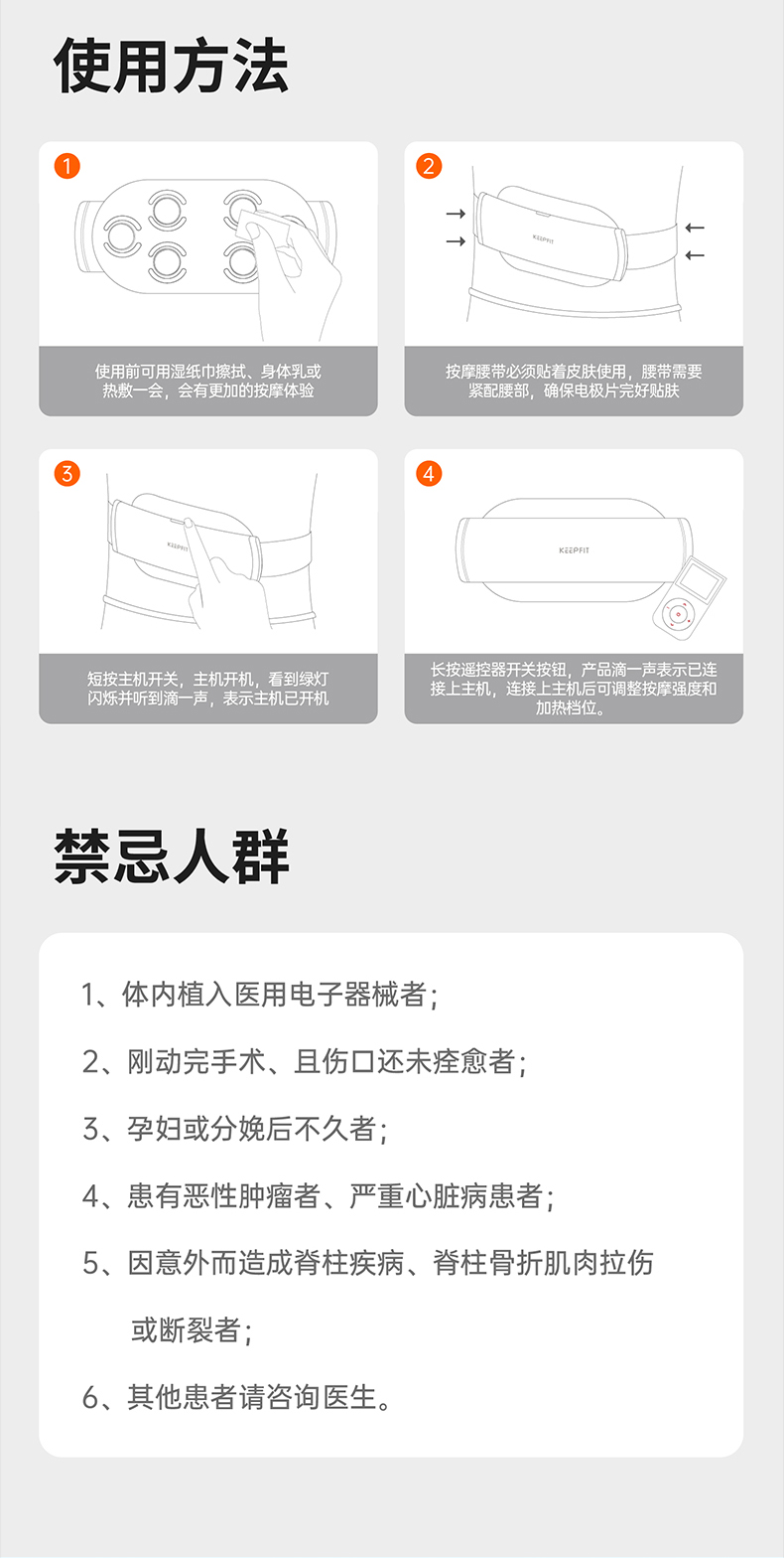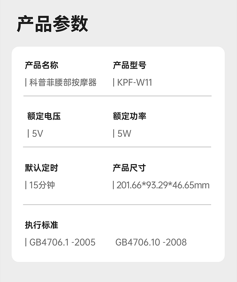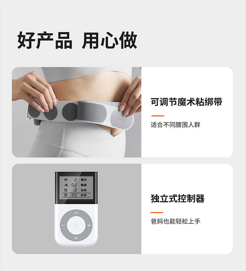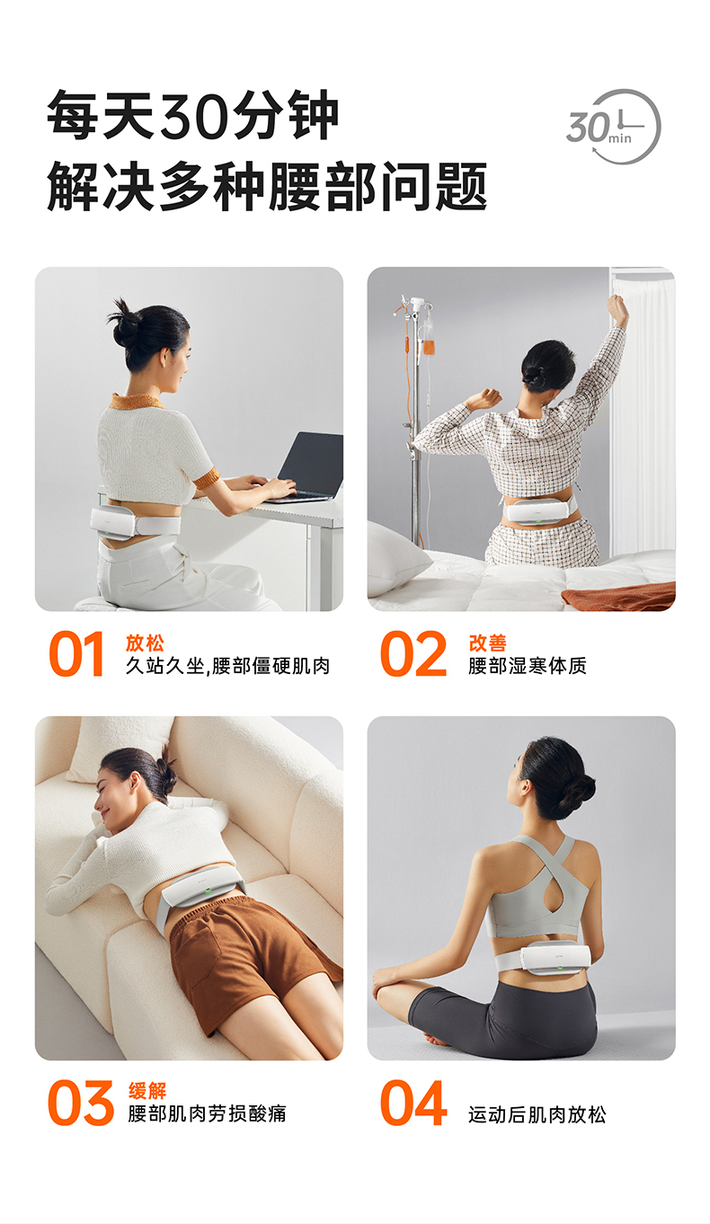 1.Tens脈沖,紅外熱敷理療 2.6大按摩頭都是獨立分區,律動交替式循環按摩方式,按摩的時候如流水般在腰部游走。 3.四種按摩手法,(刮痧敲打指壓針灸) 4.兩檔溫度:38度,42度 5.15檔按摩力度可調節,遙控帶數顯。 6.自動定時:5、10、15、20、25、30分鐘 7、充電時長≤3h,使用時長≥2h(最大功耗)