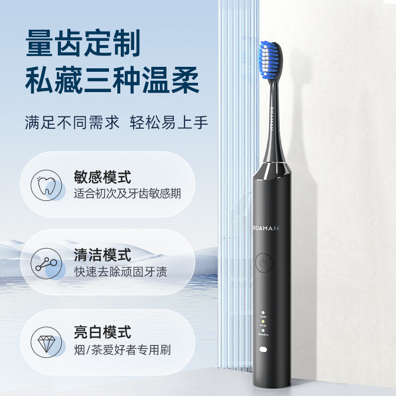 羅曼(ROAMAN)電動牙刷情侶款節日禮物/生日禮物 入門款 3種模式潔牙護齦 6支杜邦刷頭 T3增配黑色款
