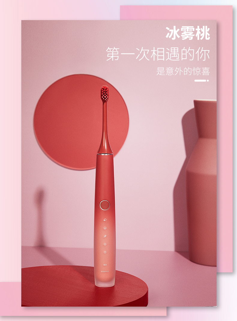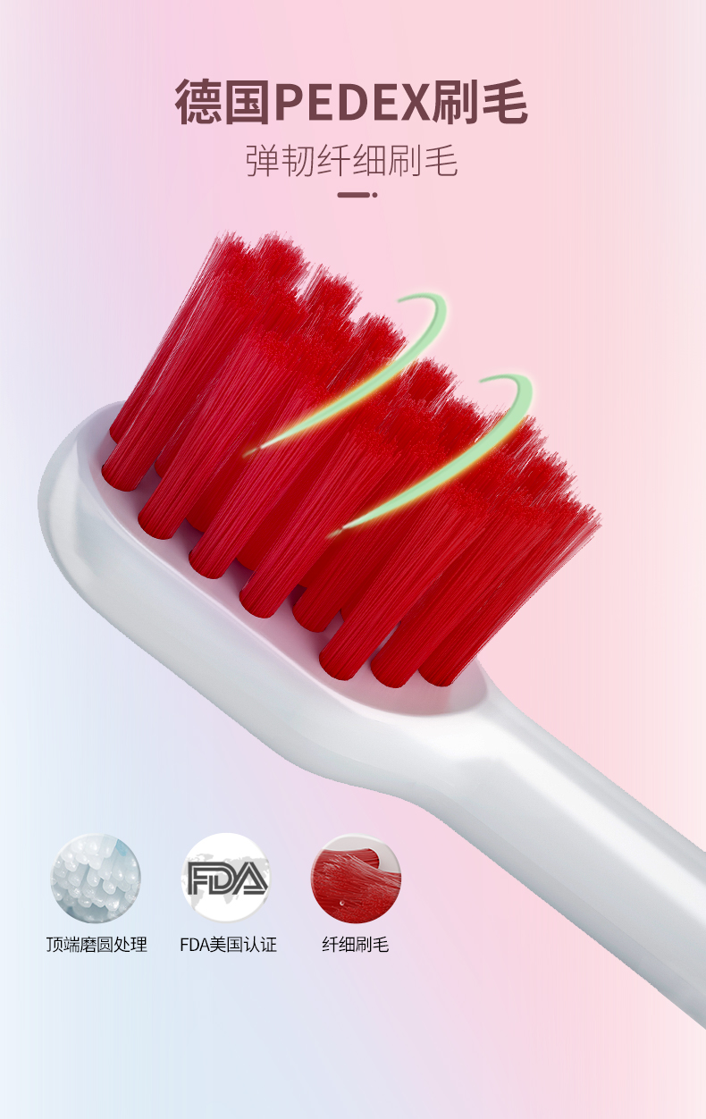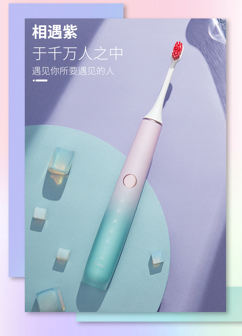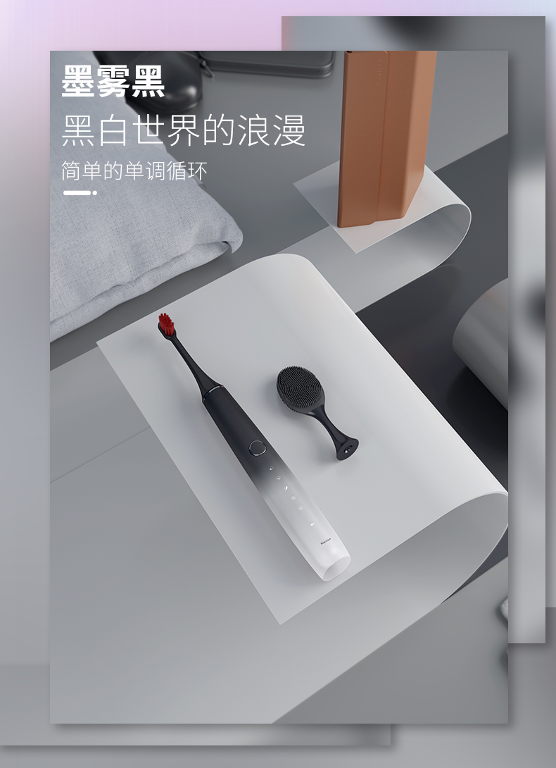 冰霧漸變機身,潮酷吸睛外觀, 刷牙洗臉二合一 德國PEDEX心型變色刷毛,一百天提醒更換 國內領先磁懸浮馬達,振動頻率最高可達3700次/分鐘 五種刷牙潔面模式:清潔/亮白/敏感/潔面/按摩 IPX7級防水,全身可水洗 3種刷頭五種功能:美白、護齦、潔面一機到位 感應充電方式,充電一次續航60天