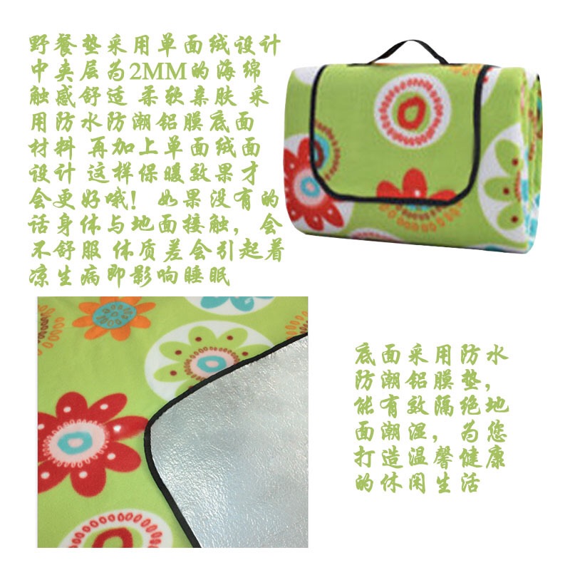 材質:鋁膜EVA,絨布 重量:320g 顏色:多色 包裝:OPP袋 特點:防潮,舒適。