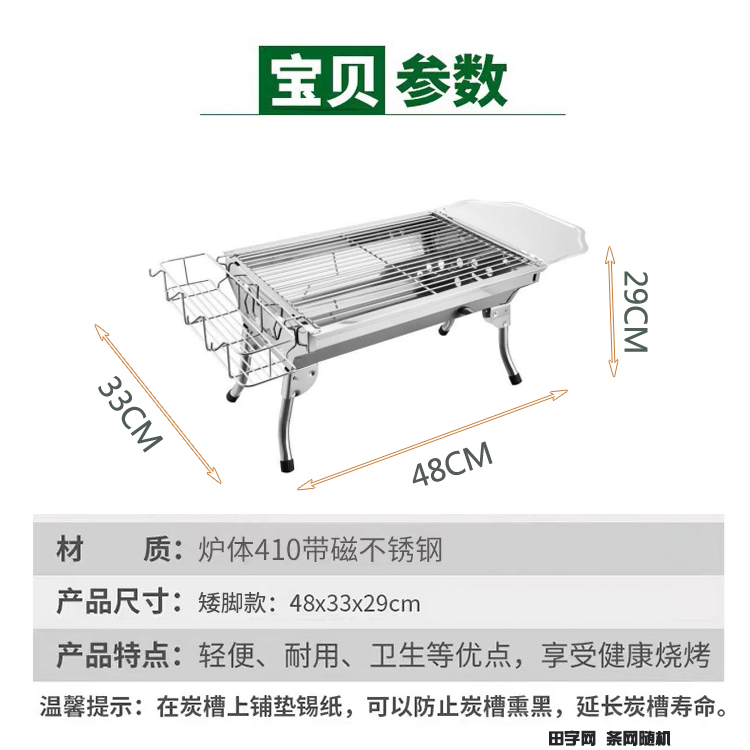 爐體和烤架采用不銹鋼材質(zhì),不易生銹,免安裝,輕便衛(wèi)生。