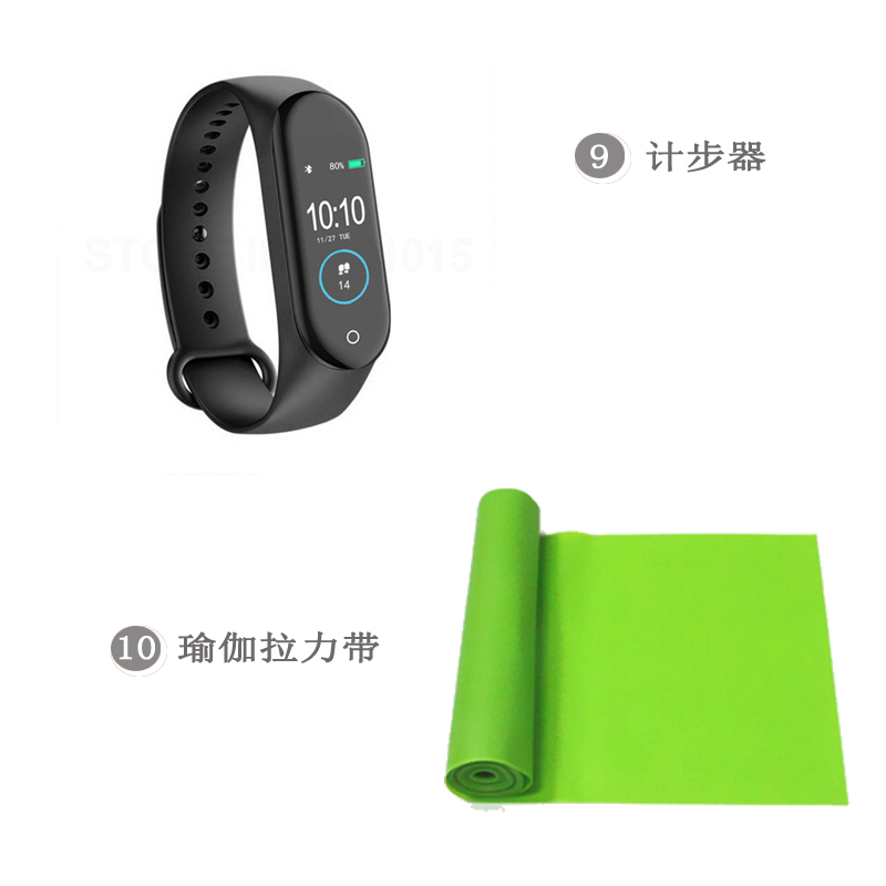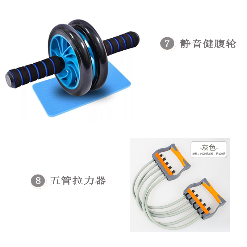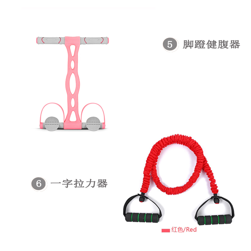 條/一字拉力器、腳蹬健腹器1個(gè)、三管擴(kuò)胸器、手柄拉力器、計(jì)步器、健腹輪1個(gè)