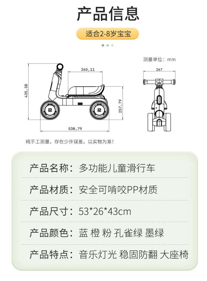 配置:整車快裝,整車環保材質,弧形舒適座椅,環保高密度EVA發泡輪。
