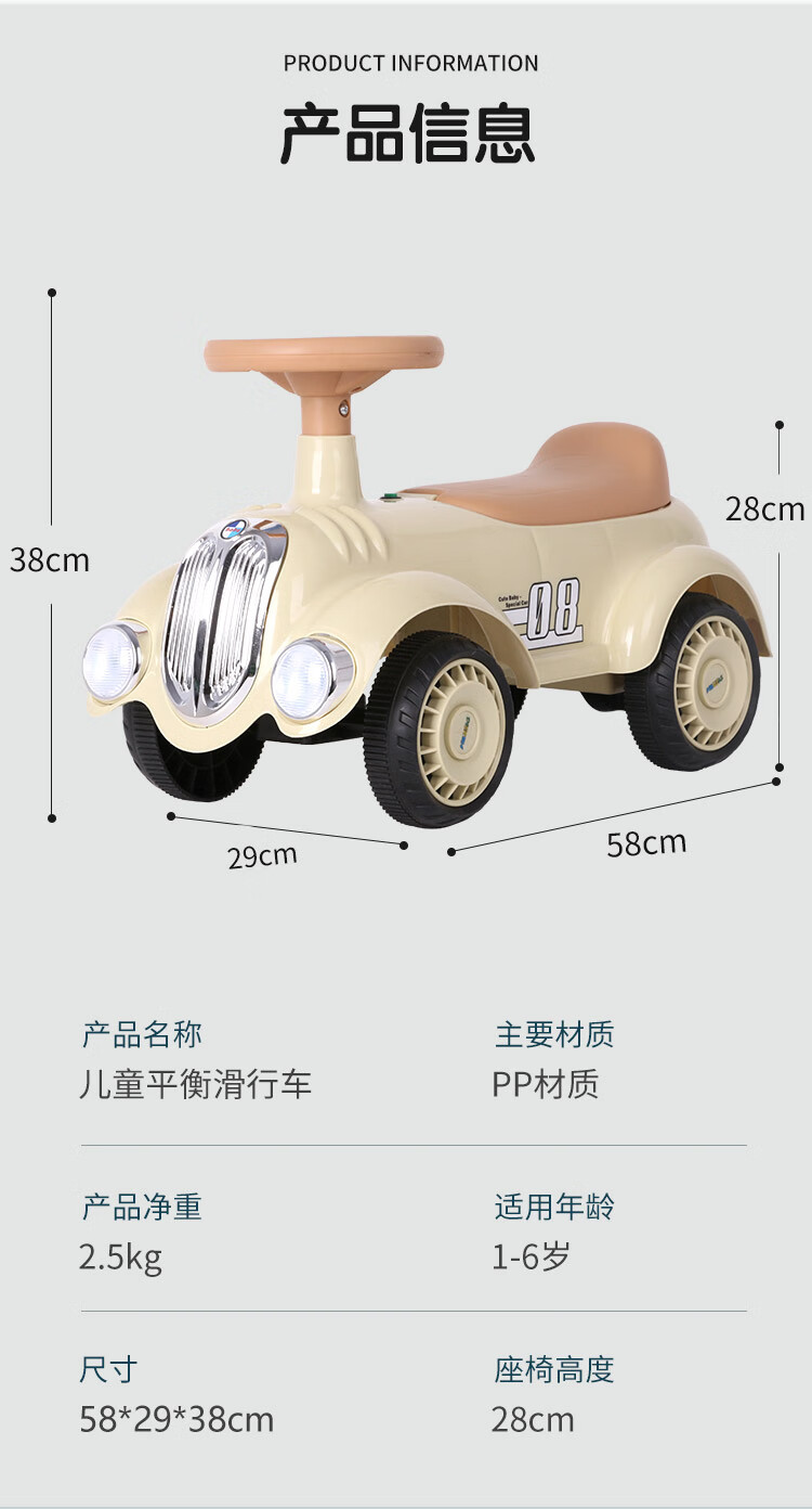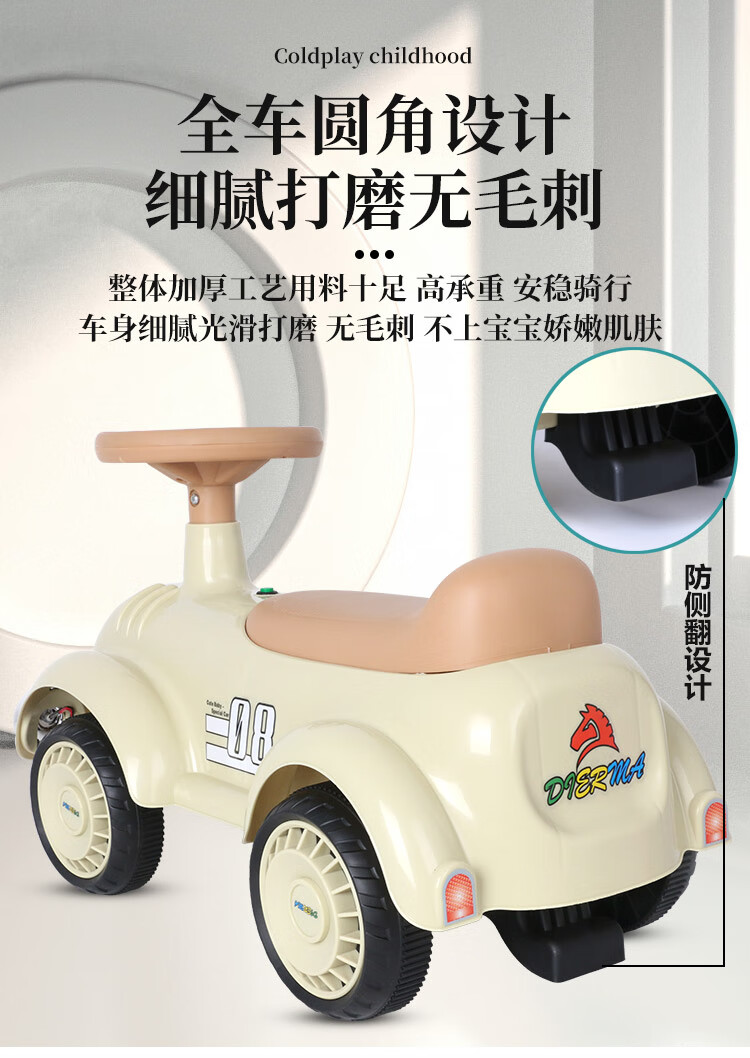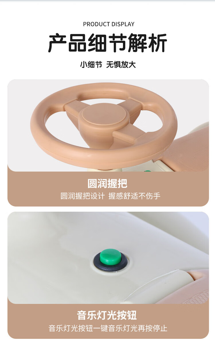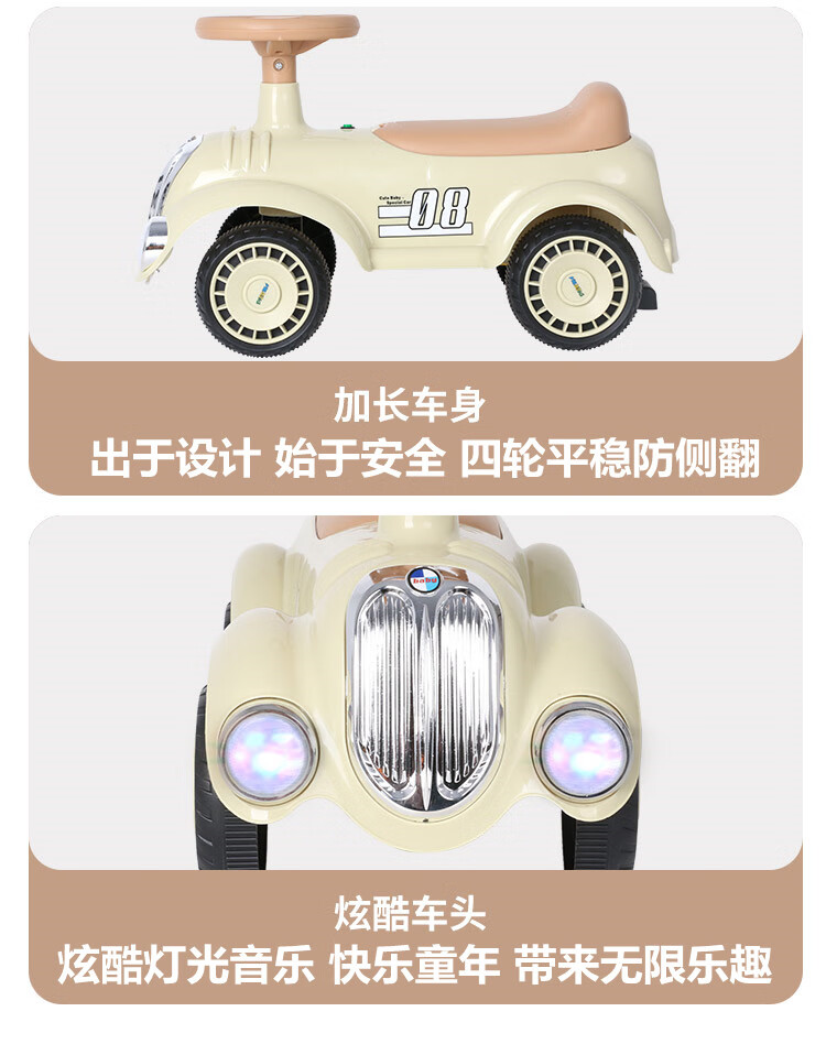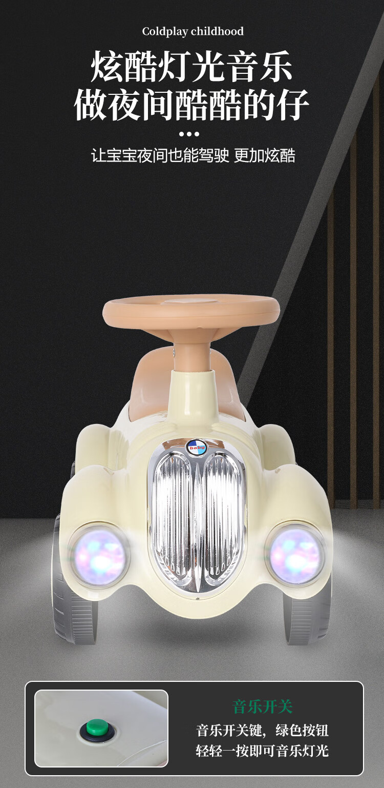 滑行款 音樂燈光,四輪防側翻,騎行玩耍穩穩的,低重心穩固結構寶寶玩耍更平穩防側翻