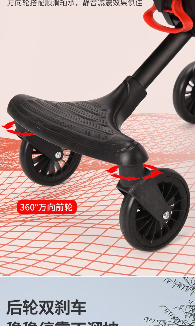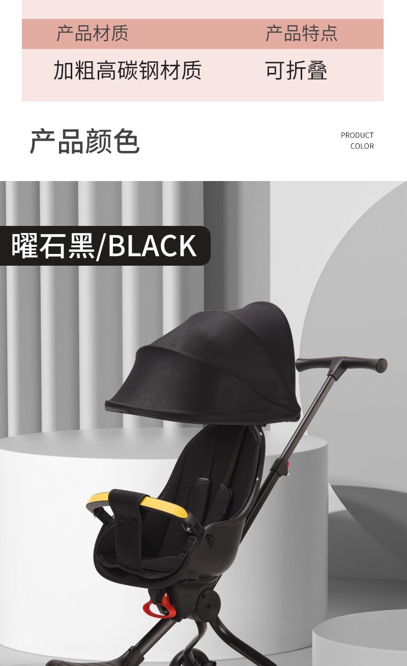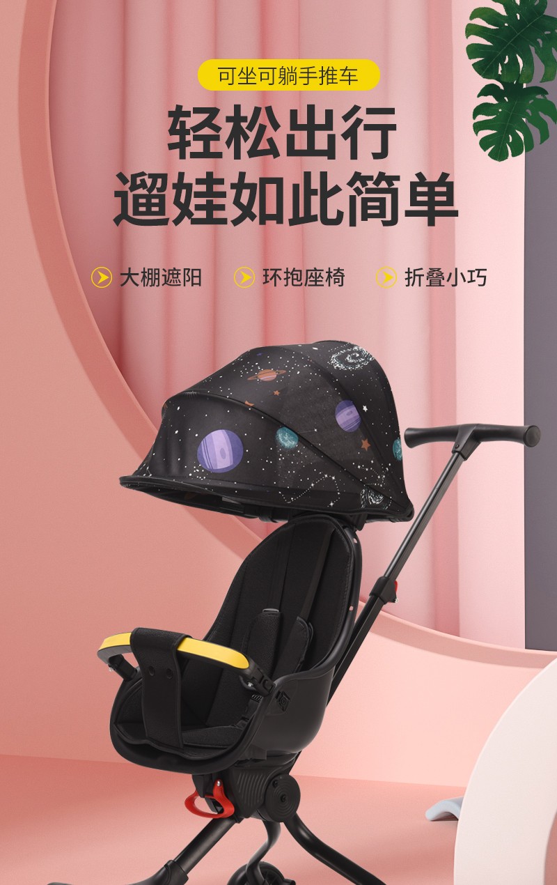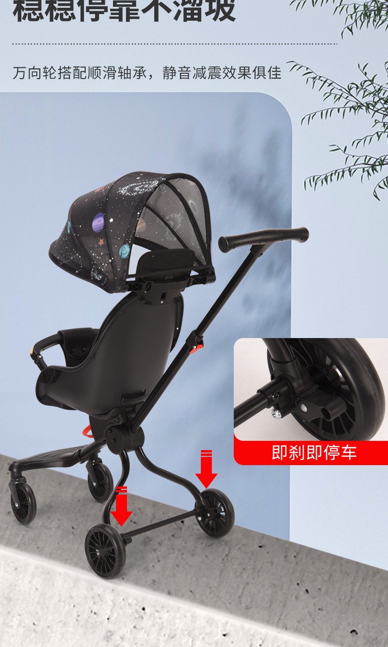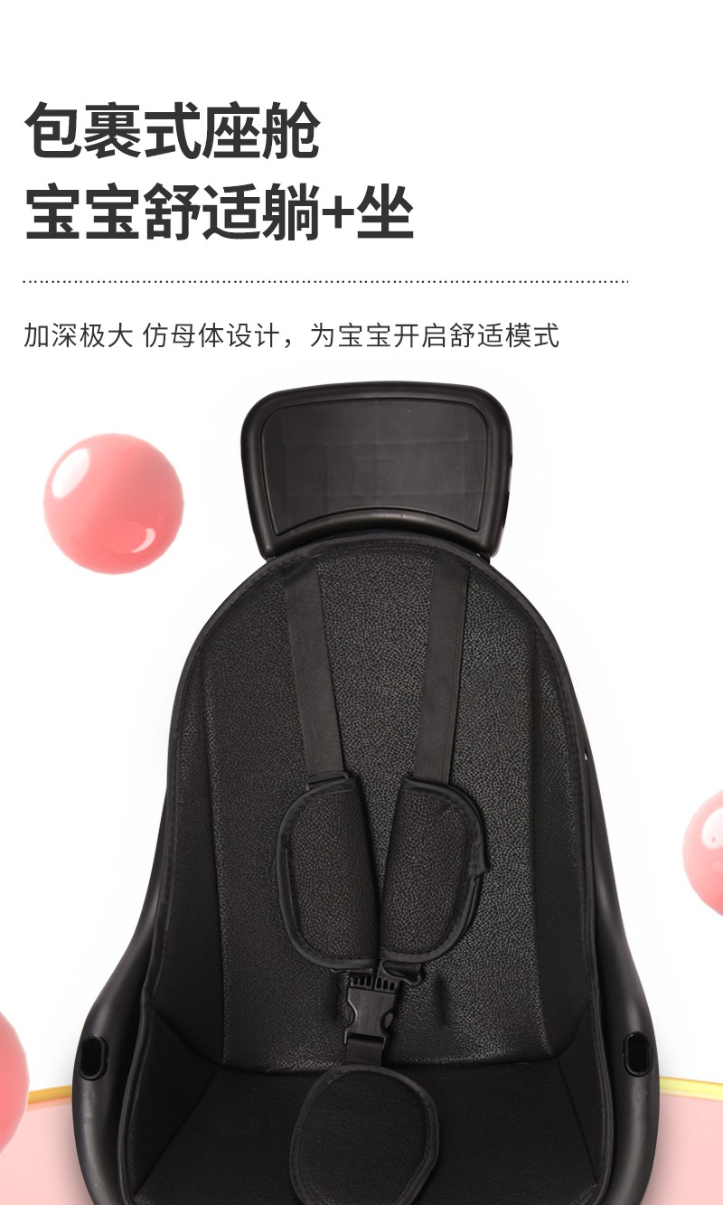 車身采用加粗高碳鋼車架,穩固安全;加寬EVA發泡輪發泡實心輪胎 ,減震防滑,包裹式座艙可坐可135o躺寶寶更舒適,輕松變換方向方便實用,磨砂圓潤把手,后輪剎車,安全升級