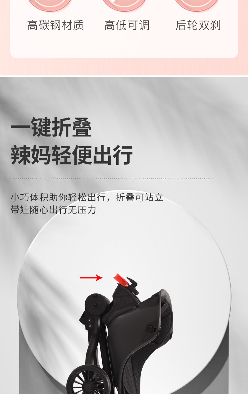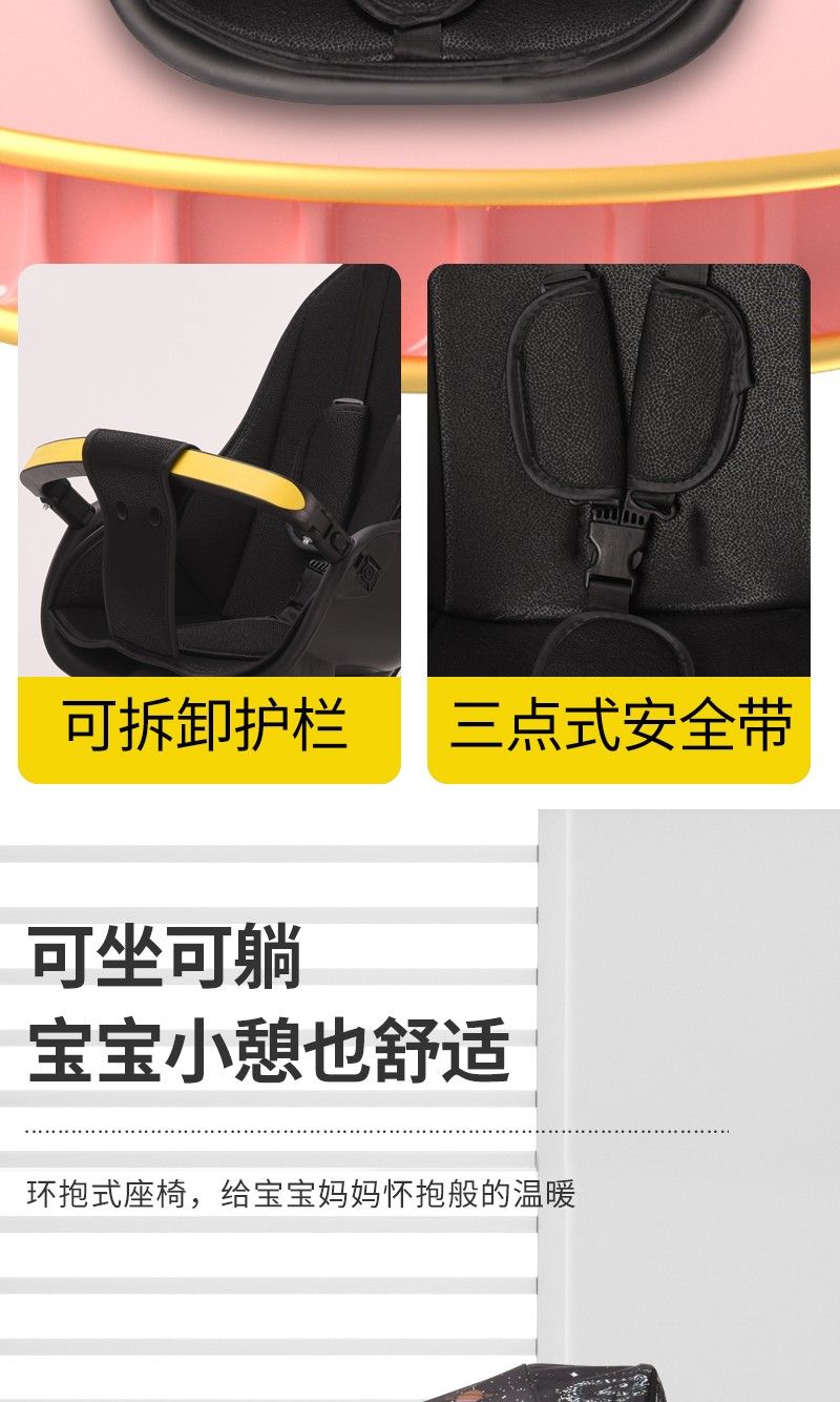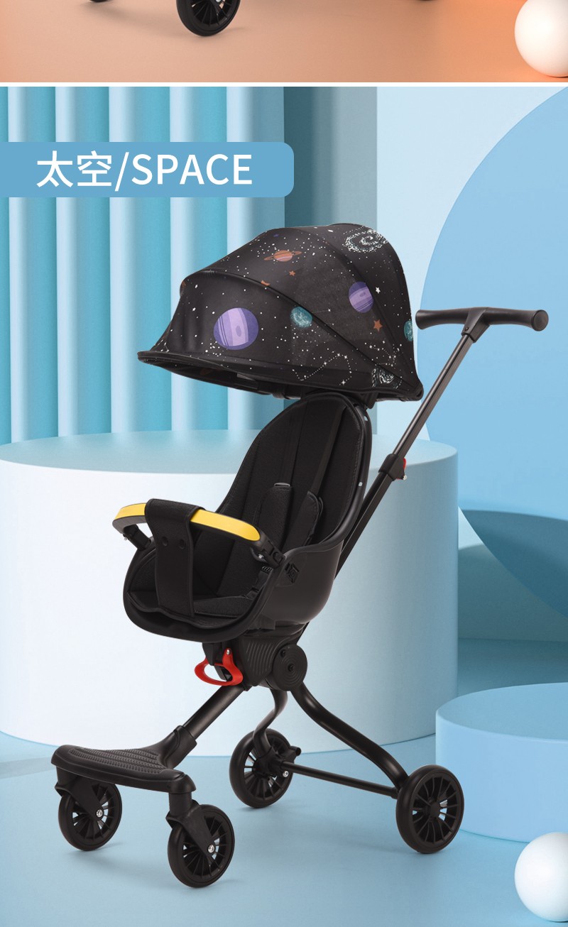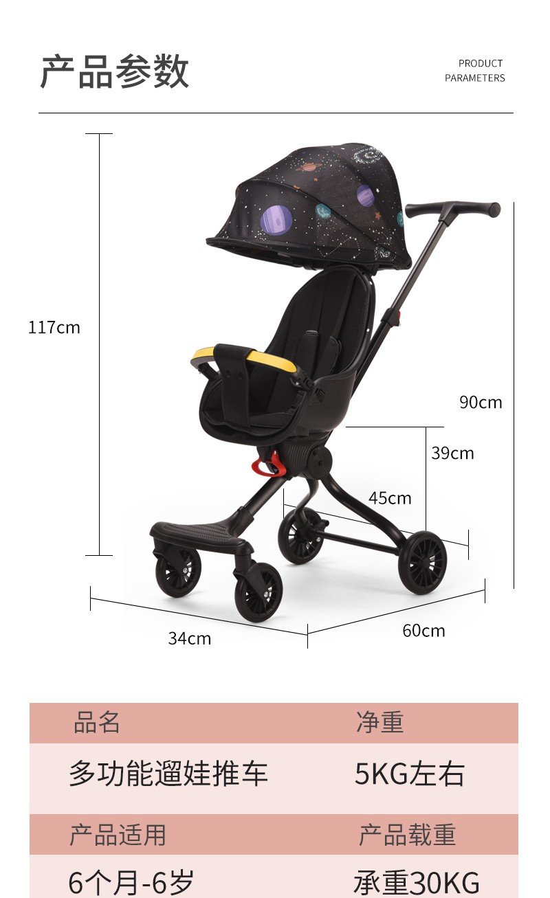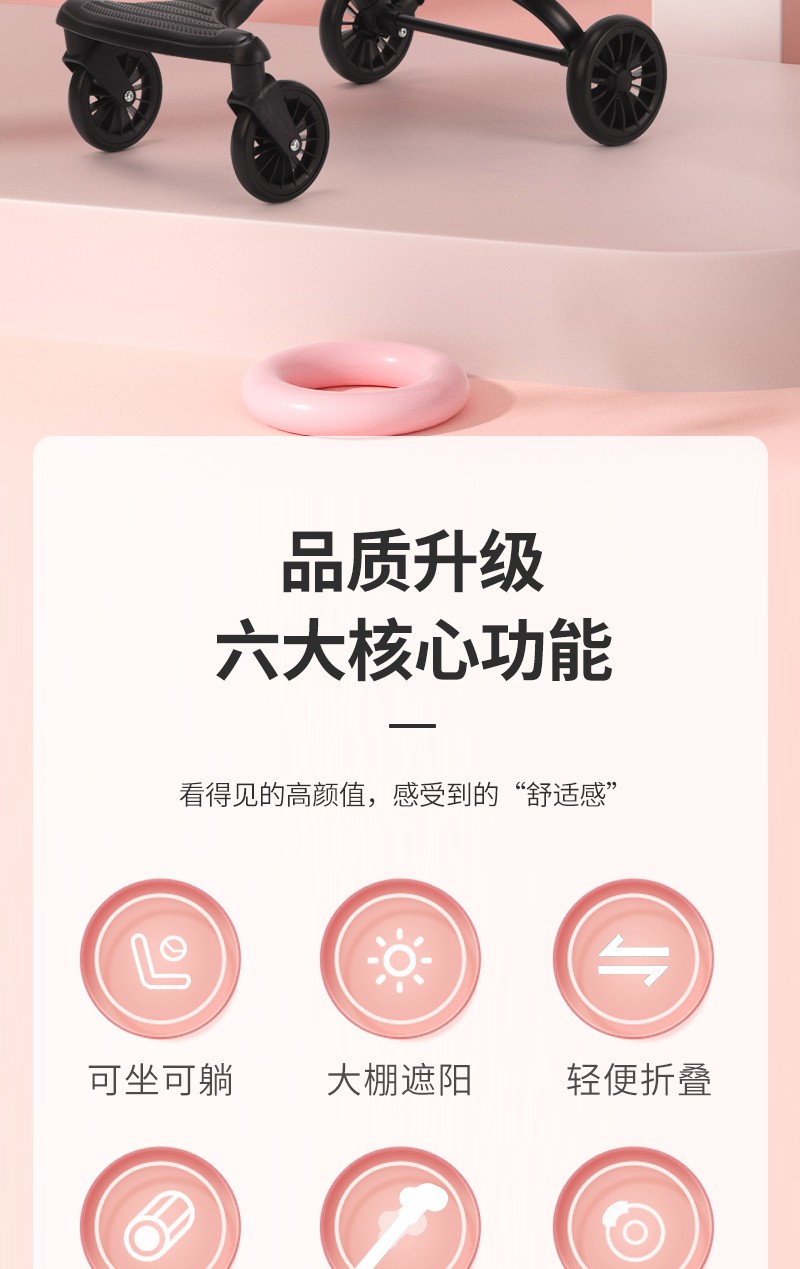 車身采用加粗高碳鋼車架,穩固安全;加寬EVA發泡輪發泡實心輪胎 ,減震防滑,包裹式座艙可坐可135o躺寶寶更舒適,輕松變換方向方便實用,磨砂圓潤把手,后輪剎車,安全升級