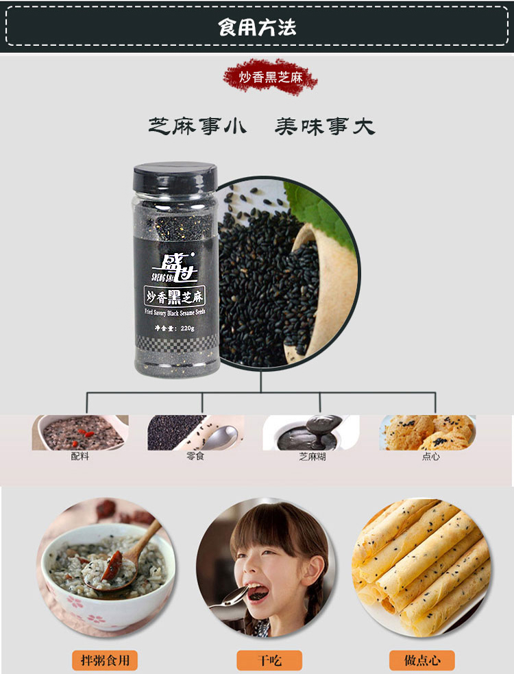 炒黑芝麻湯圓餡料西點佐餐原料磨黑芝麻糊芝麻鹽即食禮盒