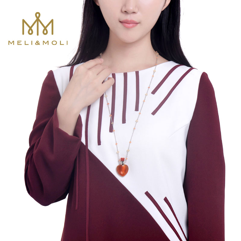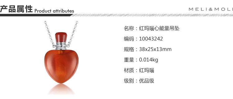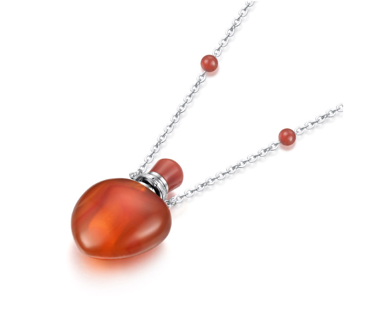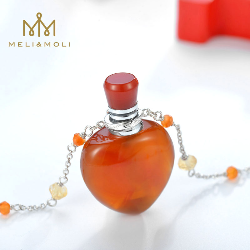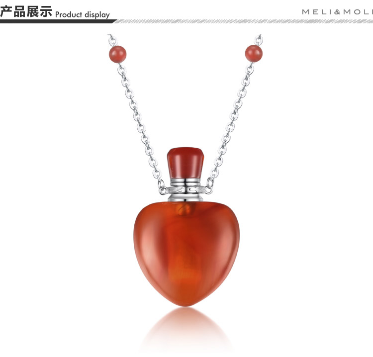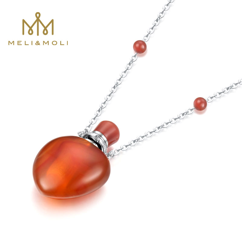 MELI MOLI天然紅瑪瑙精油瓶吊墜 香氛香水瓶S925銀項(xiàng)鏈 括香芳療保健飾品