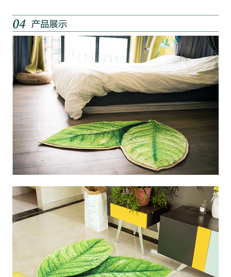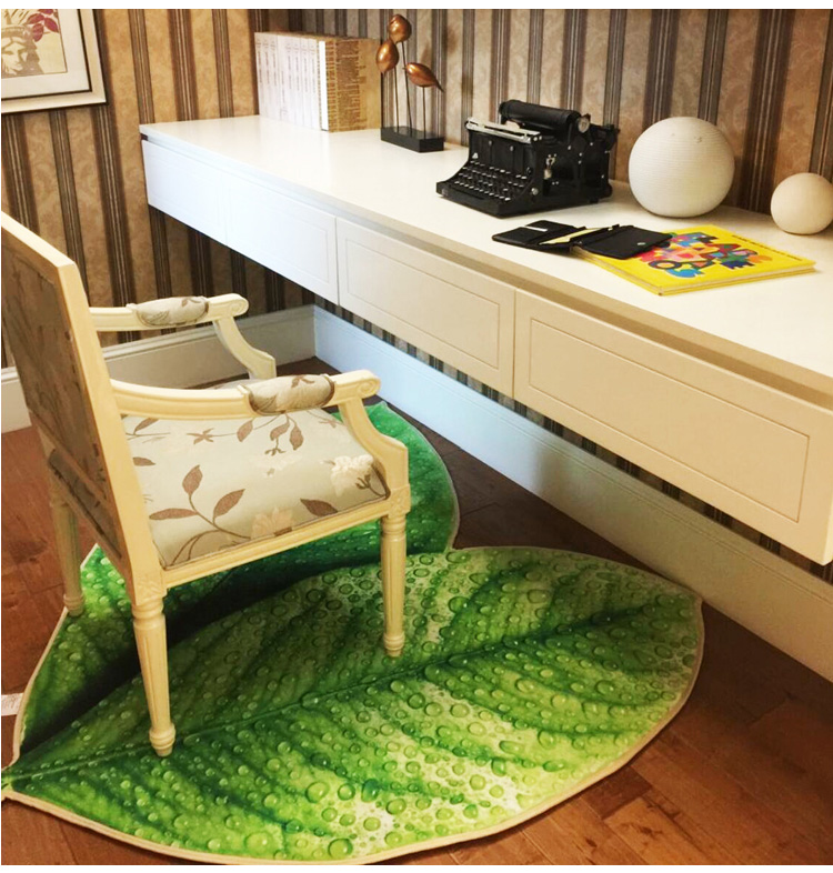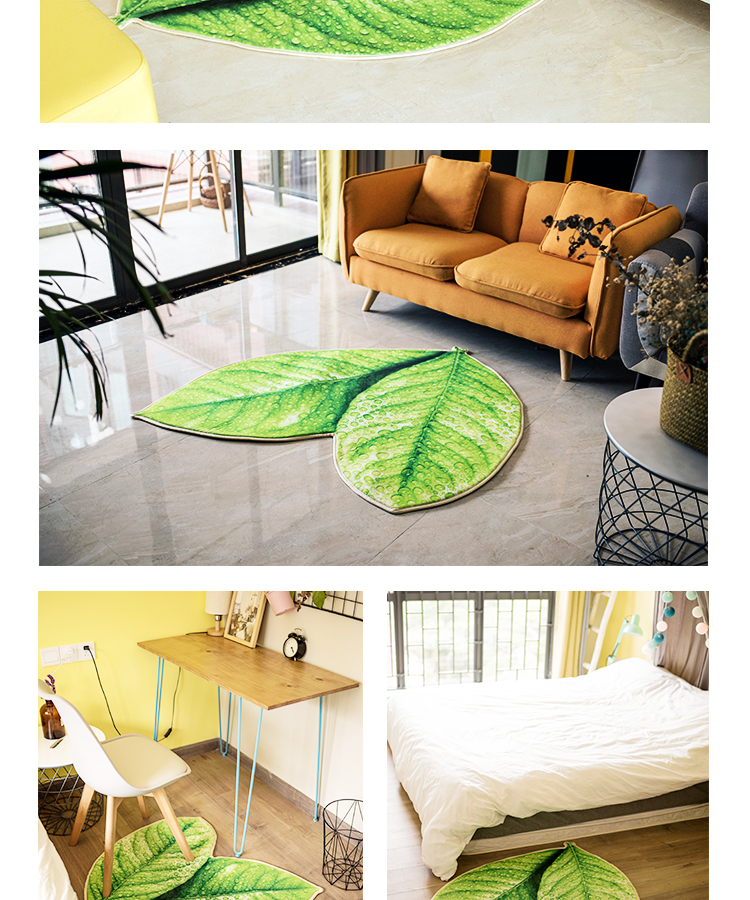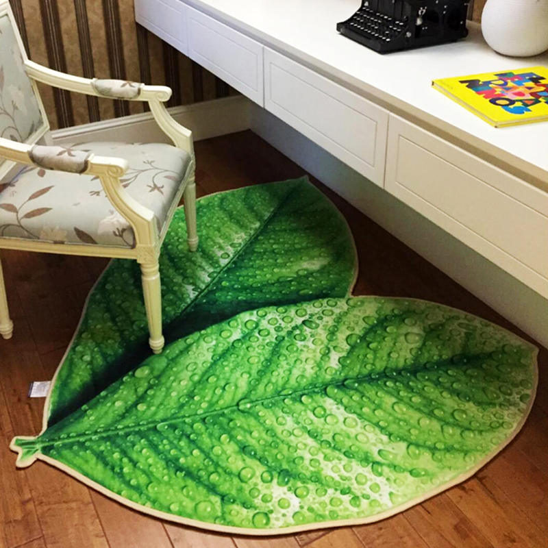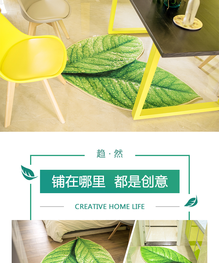 趨然(榆葉)創意綠色樹葉子地墊 個性加厚海綿浴室廚房走廊壁爐毛絨地毯