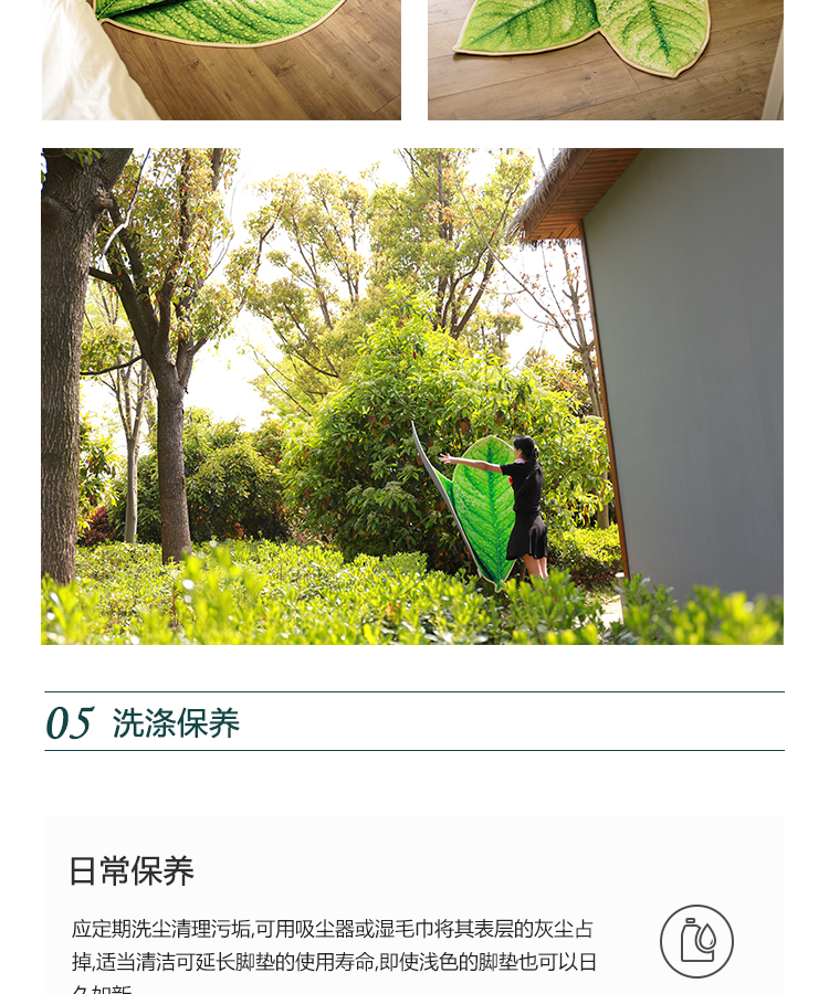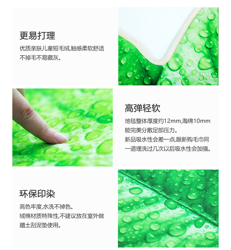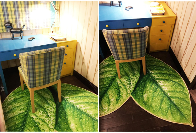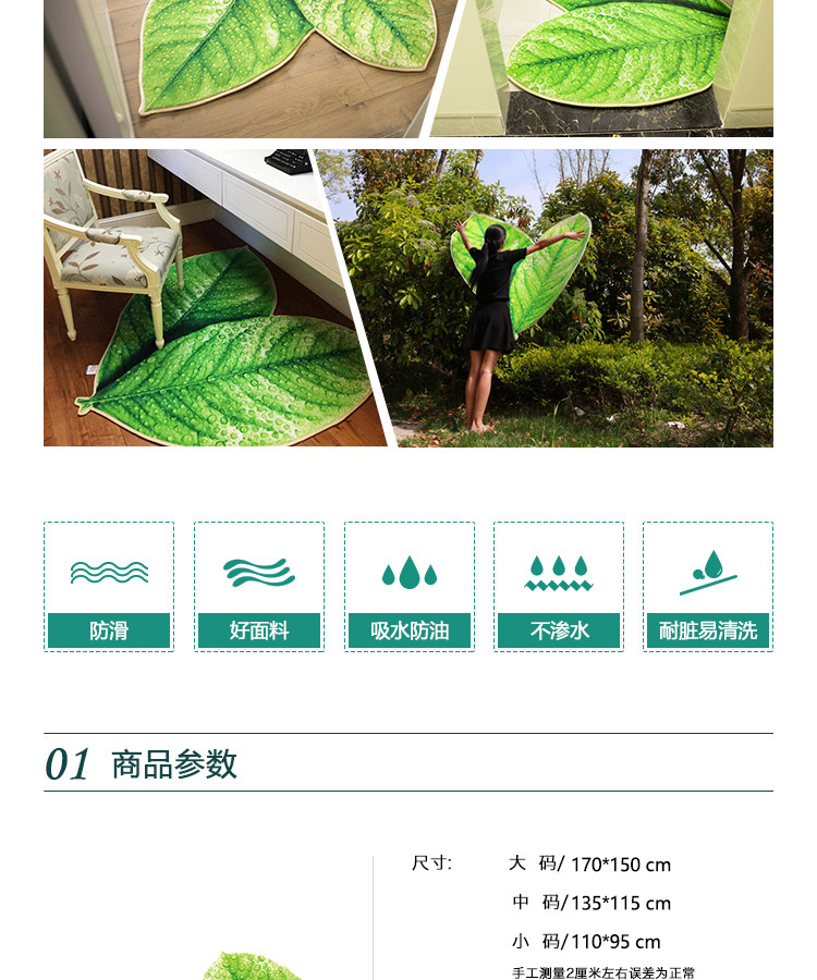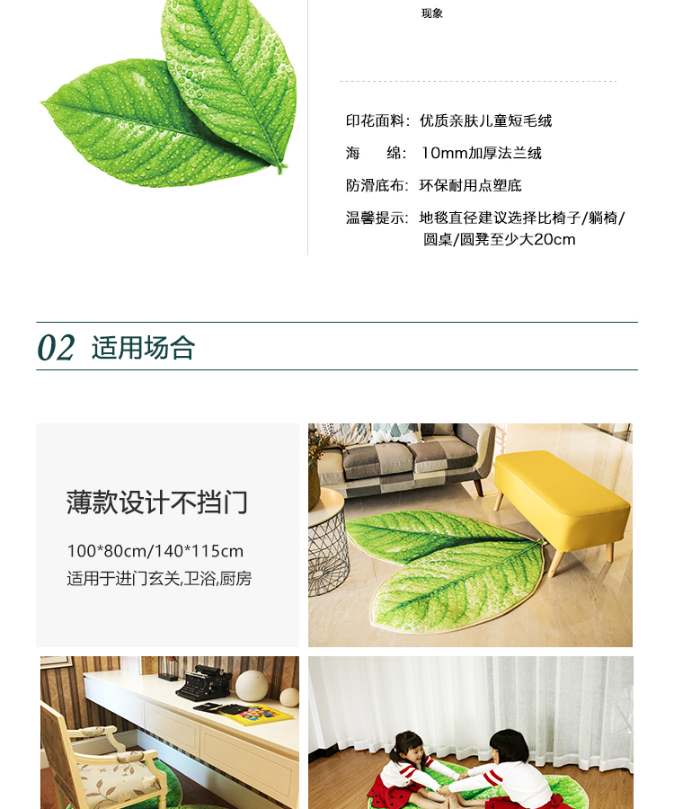 趨然(榆葉)創意綠色樹葉子地墊 個性加厚海綿浴室廚房走廊壁爐毛絨地毯