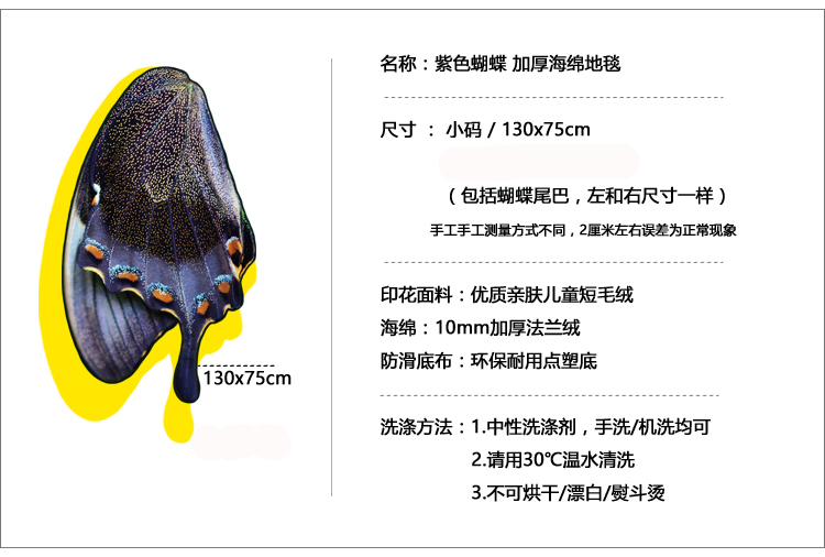 趨然創意紫色蝴蝶地墊軟綿腳墊臥室寶寶爬行地毯