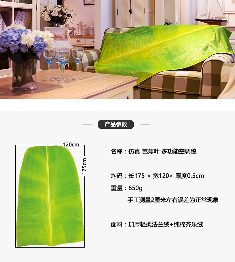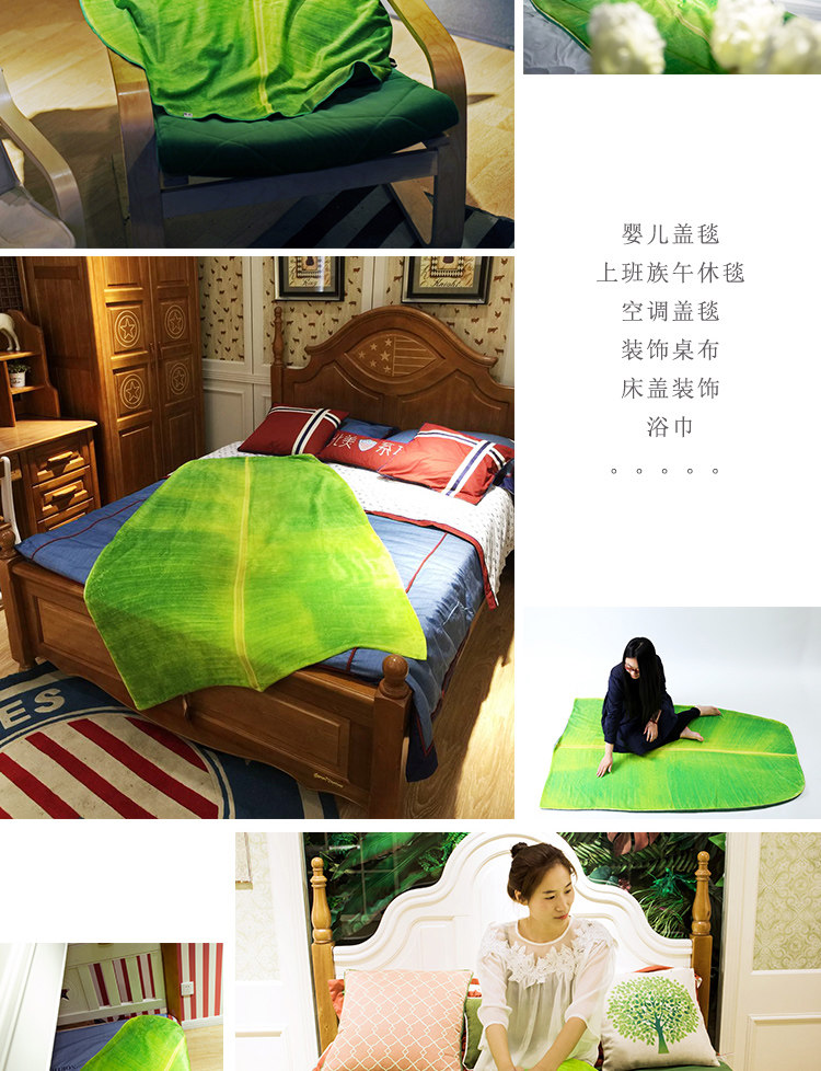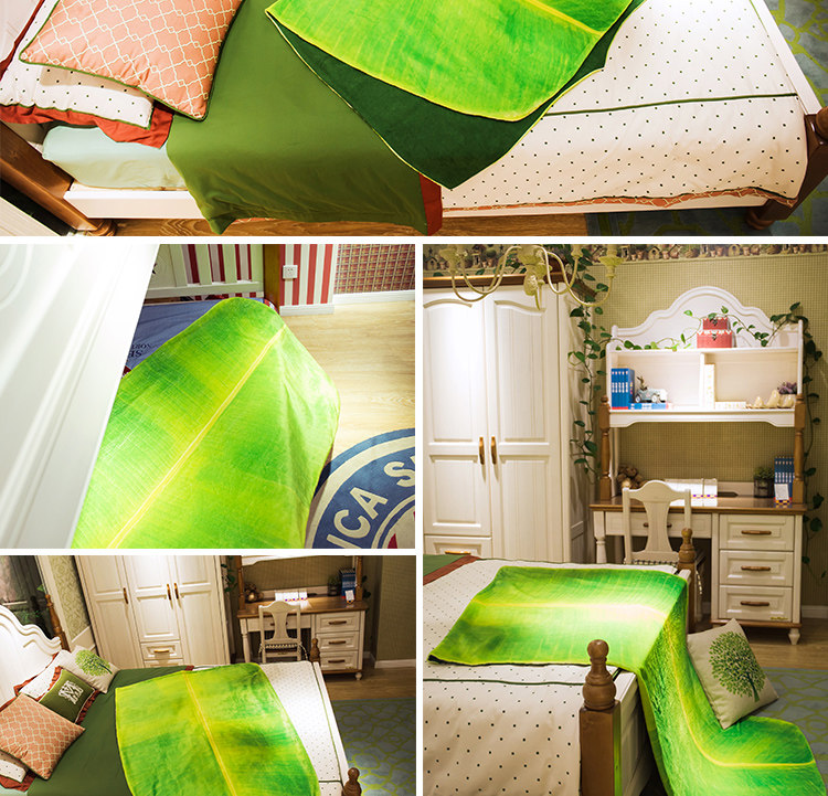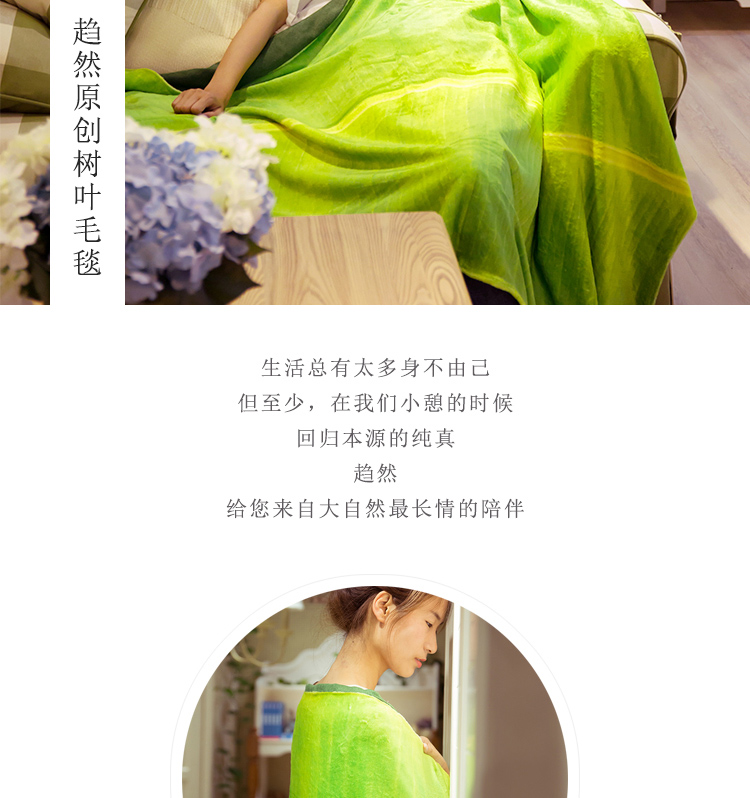 趨然原創(芭蕉葉)綠色毛毯 辦公室空調午休珊瑚絨毯子(大碼)