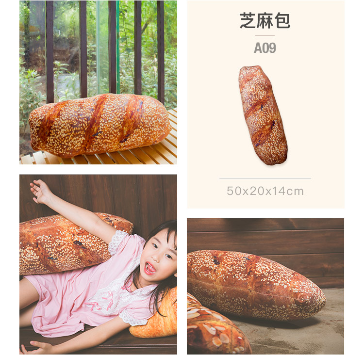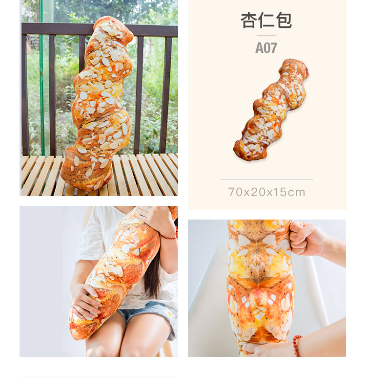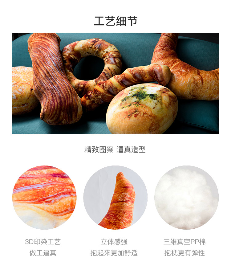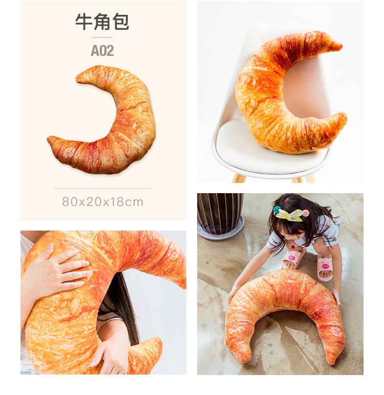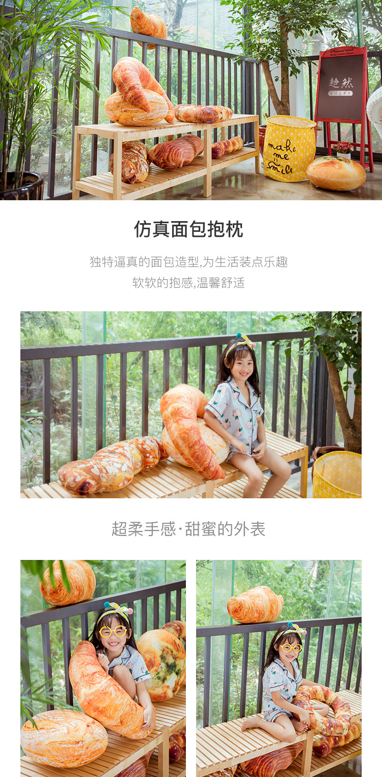 仿真面包抱枕,獨特逼真的面包造型,為生活裝點樂趣,軟軟的抱感,溫馨舒適。