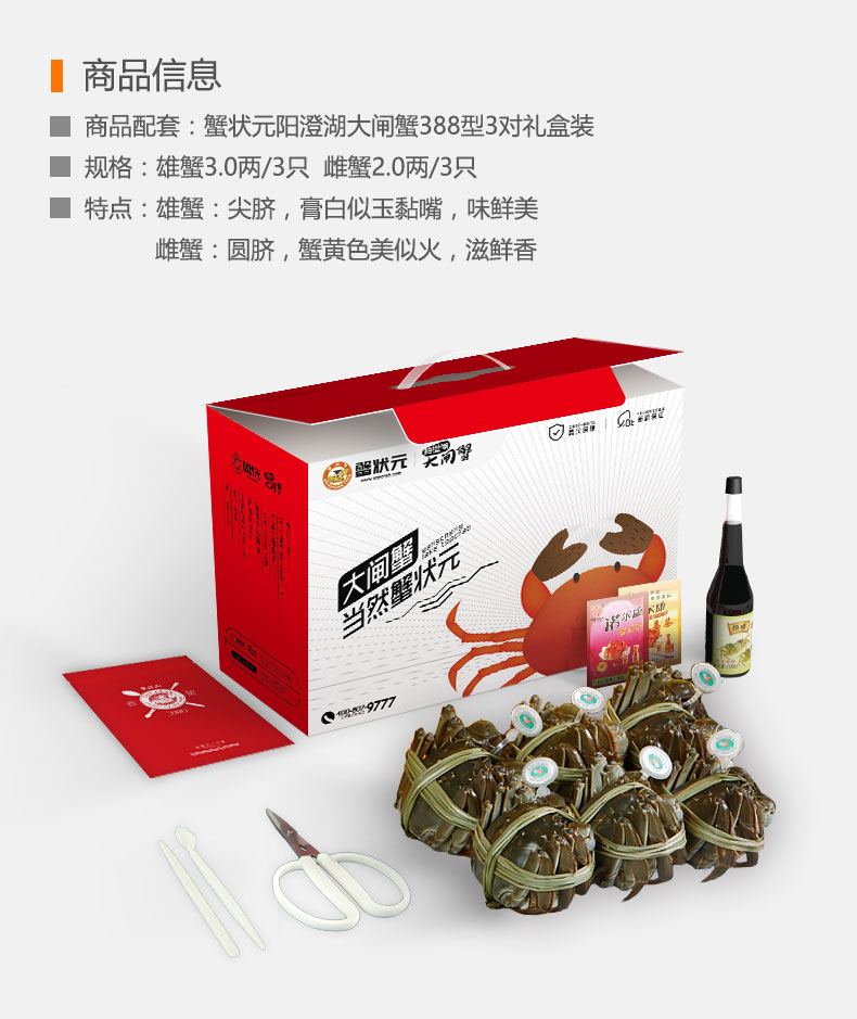 商品套餐:雄蟹3.0兩/3只 雌蟹2.0兩/3只