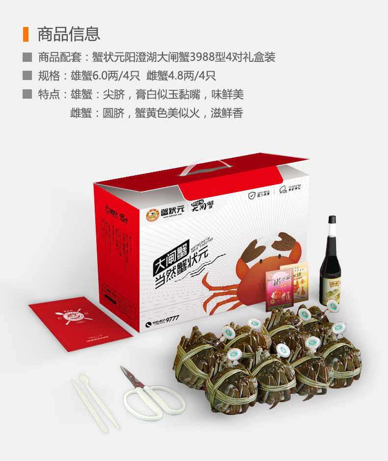 商品套餐:雄蟹6.0兩/4只 雌蟹4.8兩/4只
