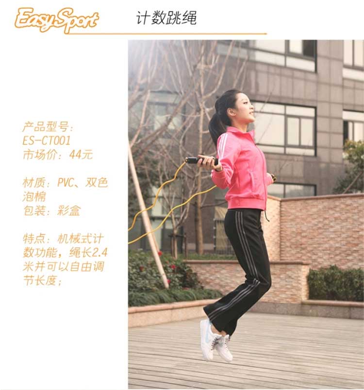 機械式計數跳繩,準確又實用,雙色泡棉,手感出色,外觀時尚,是最實用的隨身運動小套裝。