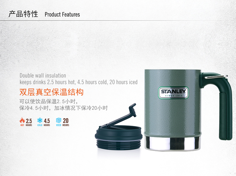 雙層不銹鋼 舒適防滑手柄 翻蓋即飲