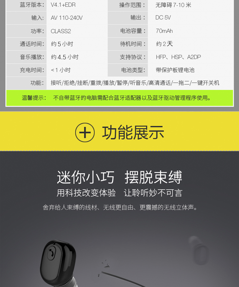 產品名稱:頤電迷你超小隱形無線藍牙耳機