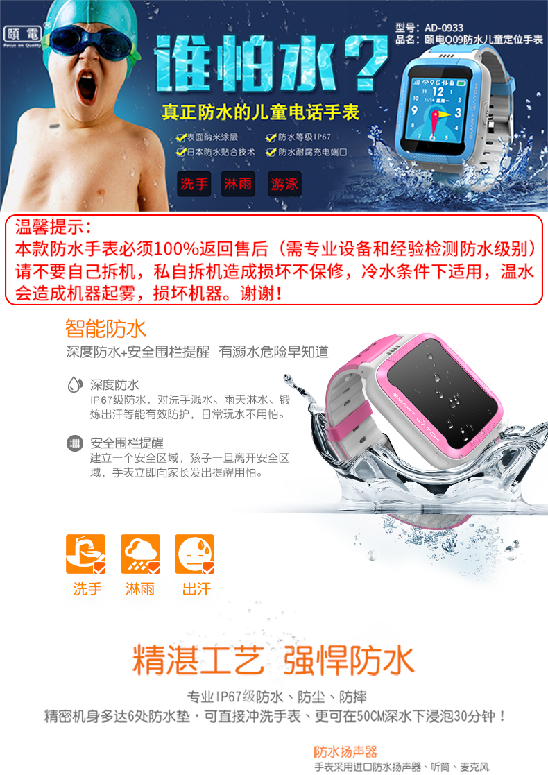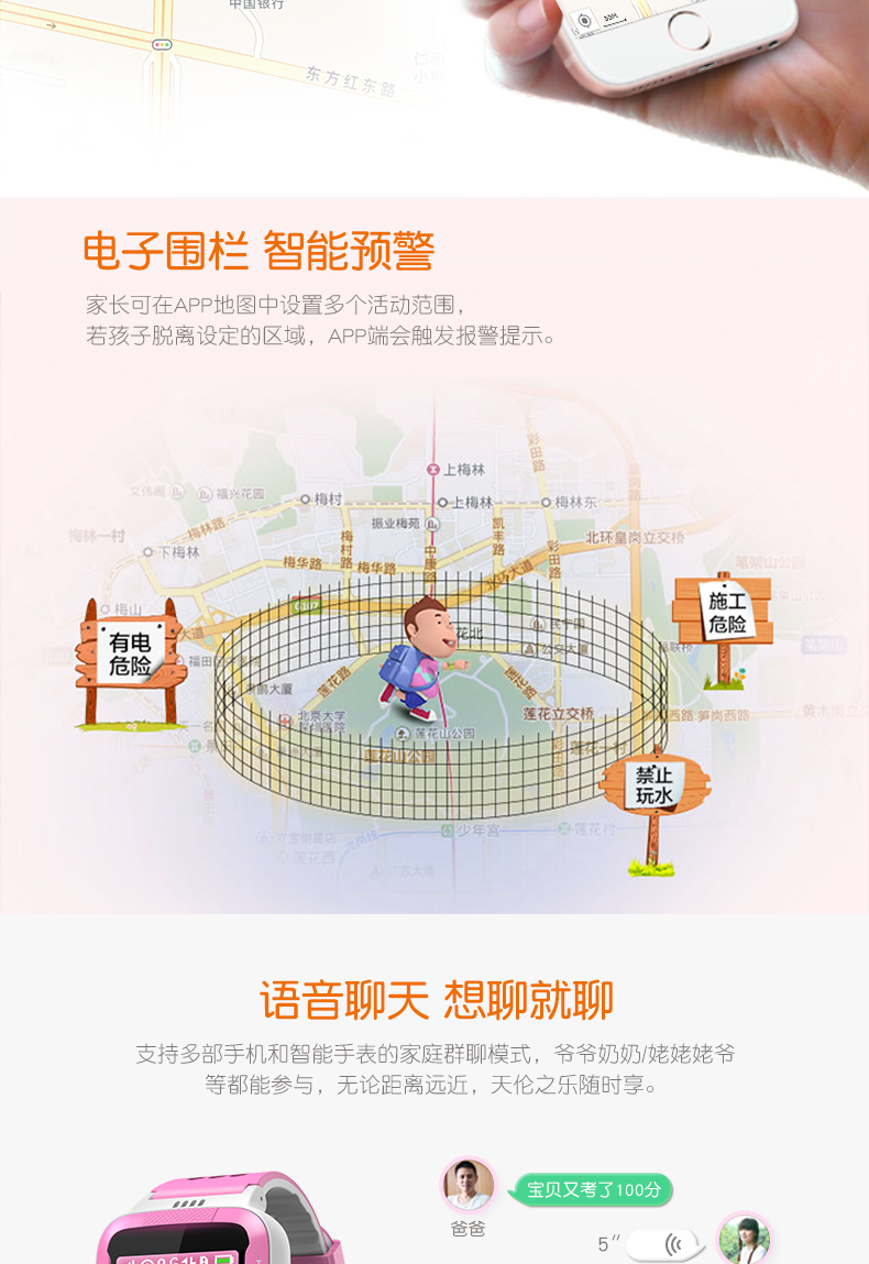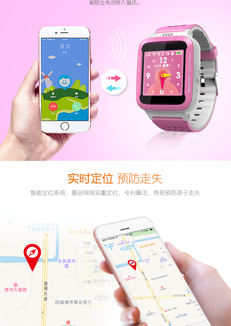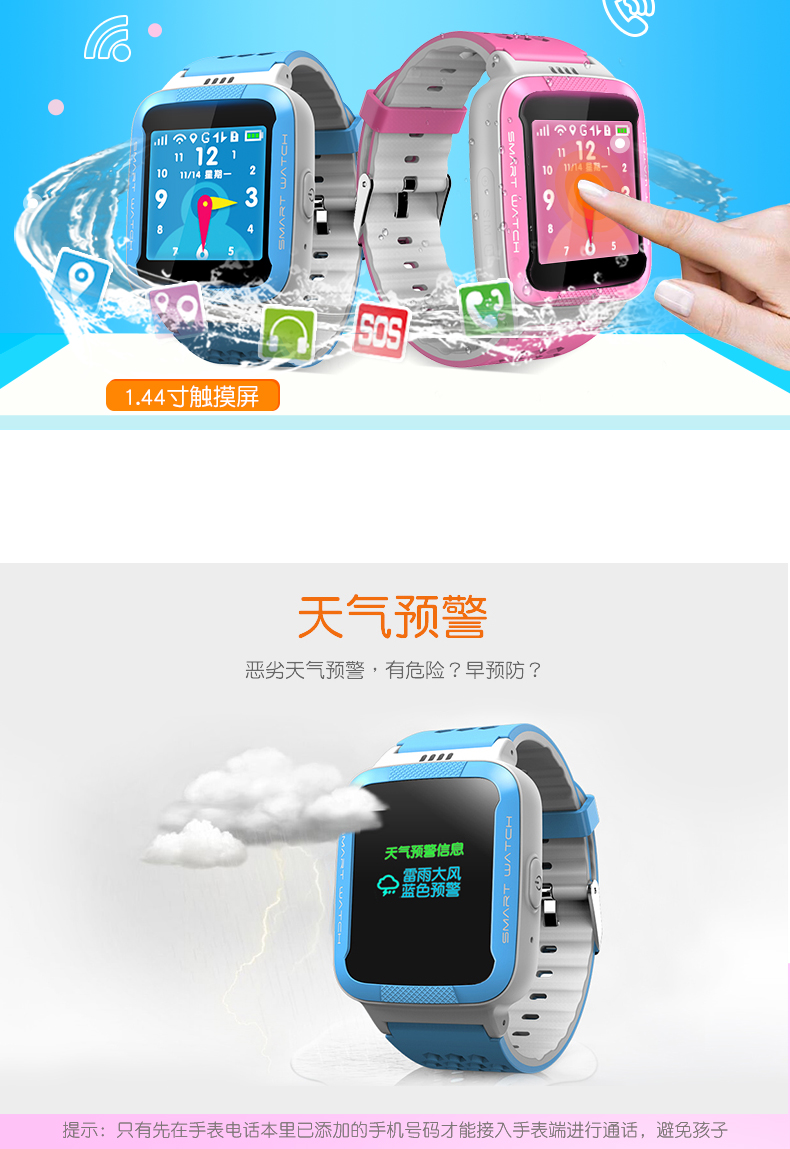 2、觸摸屏手表,含天氣預警,實時定位,預防走失,電子圍欄,智能預警;