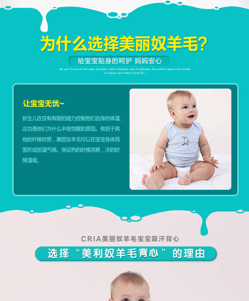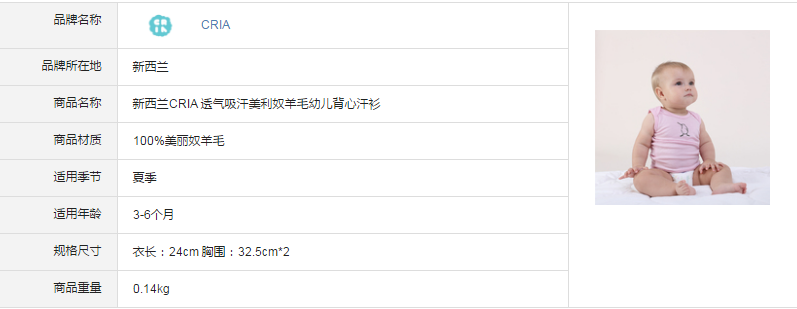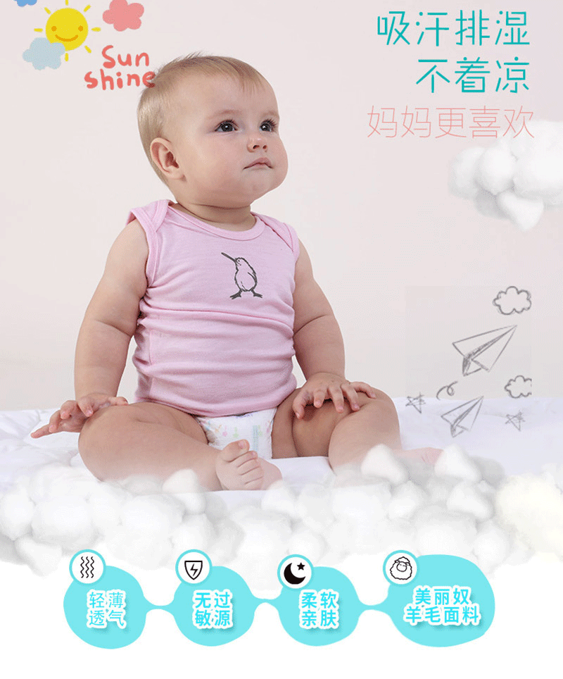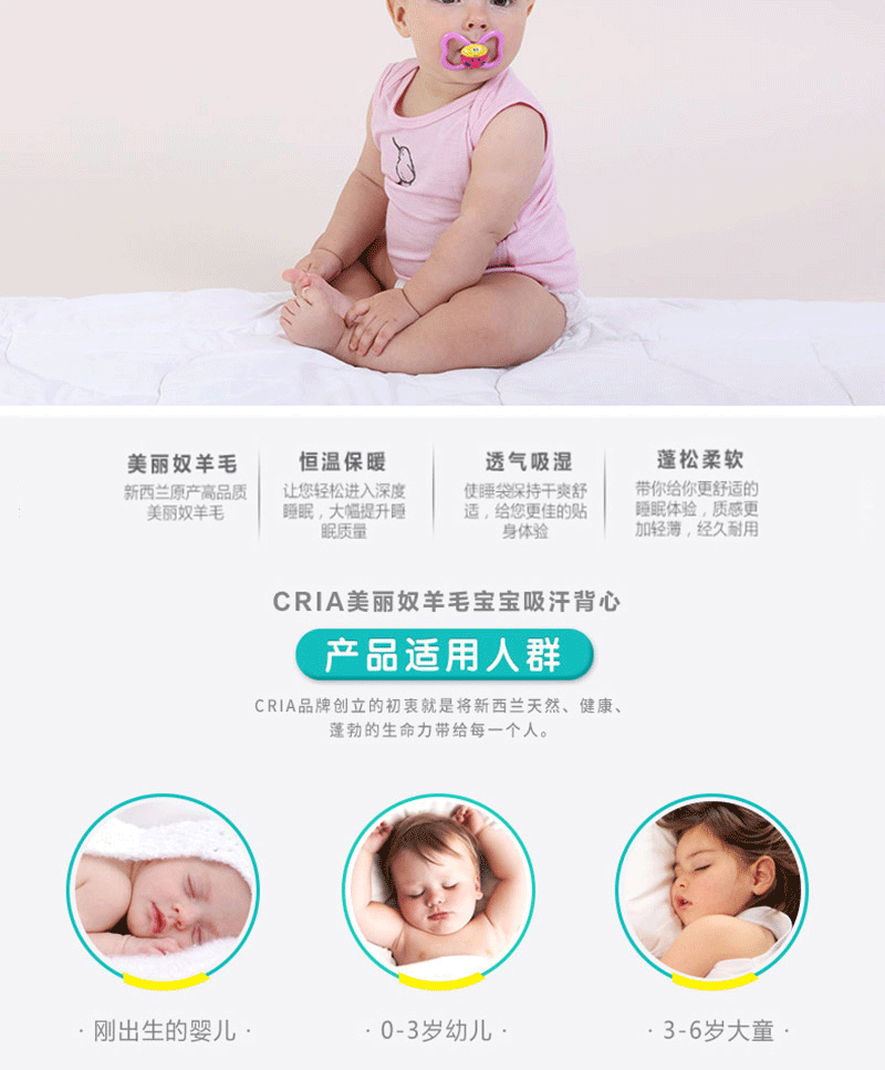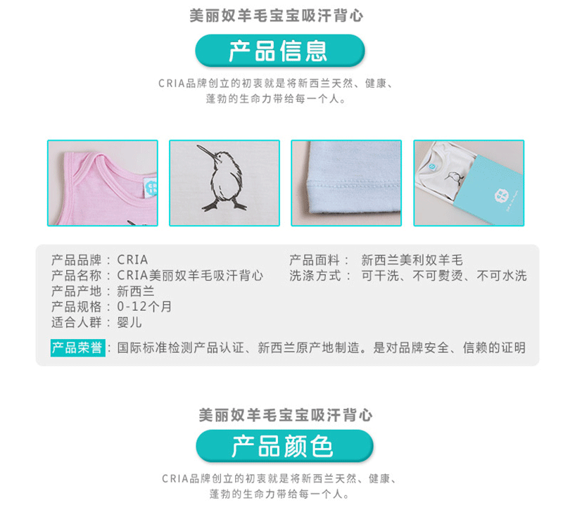 新西蘭原產CRIA 吸汗透氣美利奴羊毛幼兒背心汗衫 3-6個月