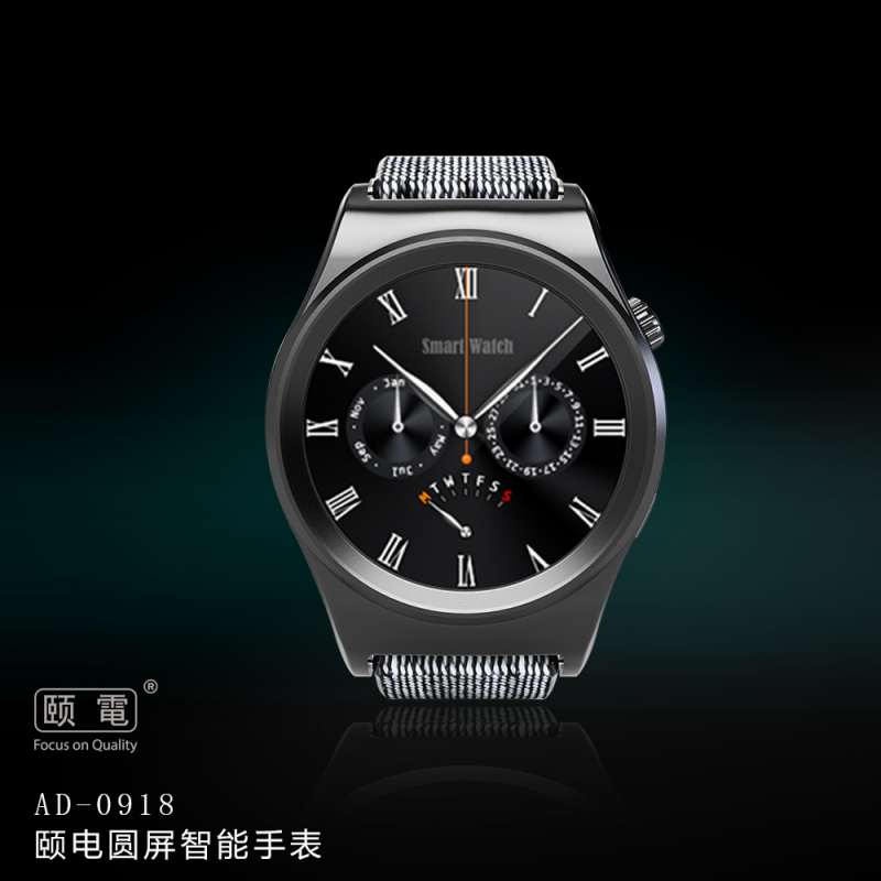 頤電 圓屏智能手表 觸摸屏高清計步手表 精確心率檢測 AD-0918