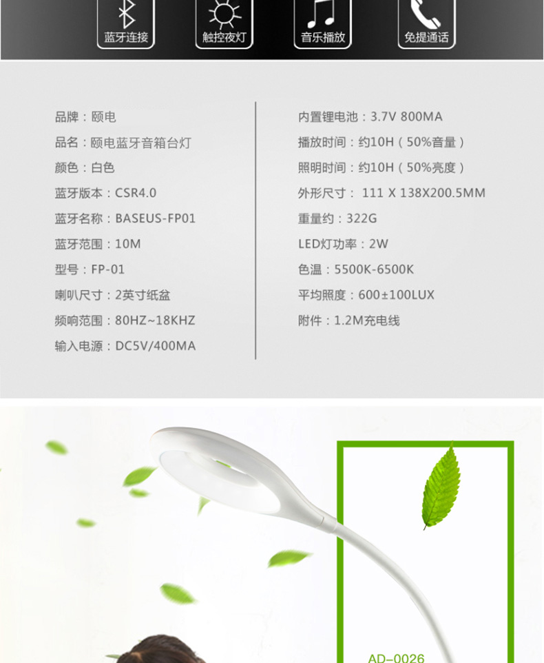 產(chǎn)品名稱:頤電藍(lán)牙音箱臺燈
