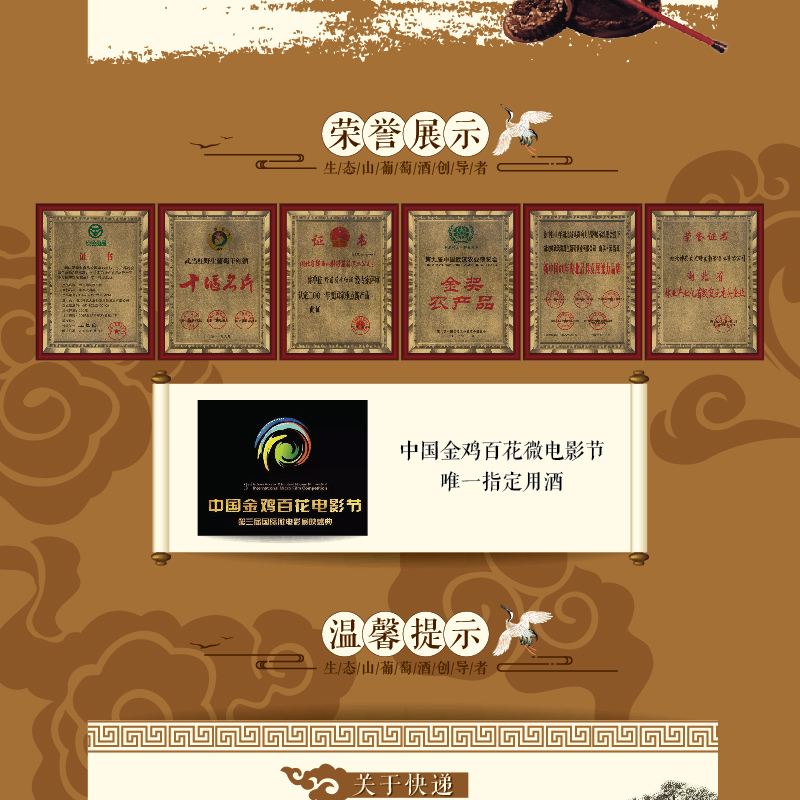 武當紅生態山葡萄酒,產自著名的梅諾克酒莊,其擁有20萬畝的野生葡萄基地。其單寧含量是普通葡萄酒的10倍,白藜蘆醇含量是普通葡萄酒的2-3倍。白藜蘆醇被稱為植物抗毒素,對腫瘤、動脈硬化、心腦血管疾病都有著不可替代的預防及治療作用。武當紅有機野生山葡萄酒將高品質的生活態度與品酒結合,讓生活更富有內涵。