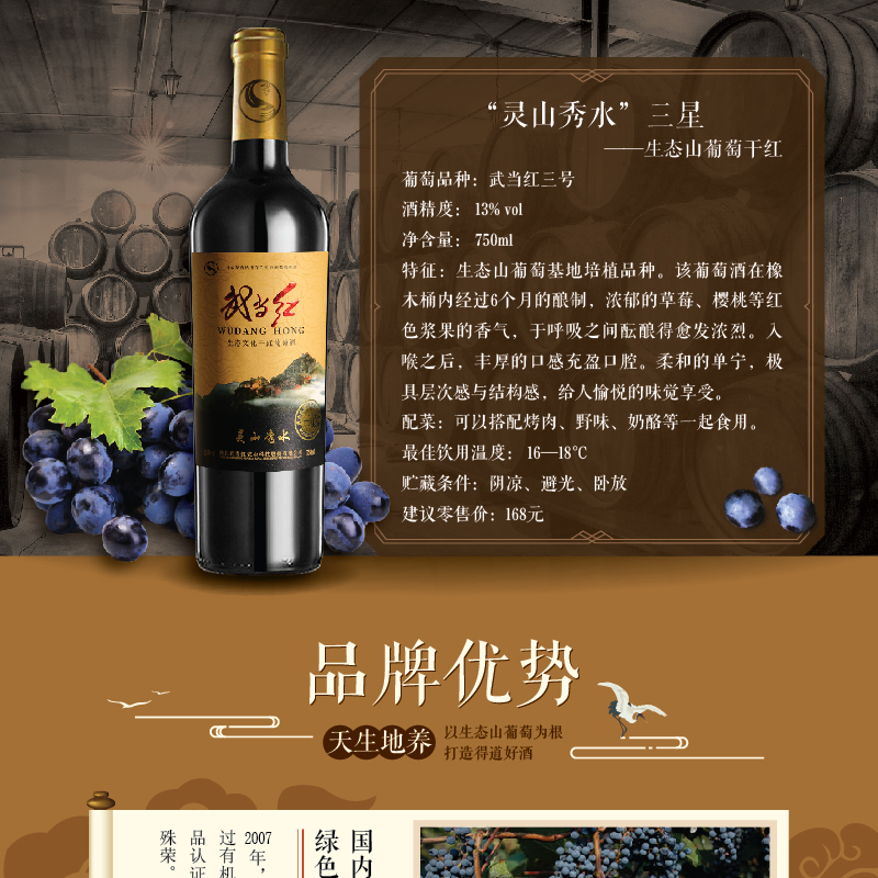 · 商品名稱:【武當紅】靈山秀水(一箱6支) 武當紅生態山葡萄酒靈山秀水三星750ml*6