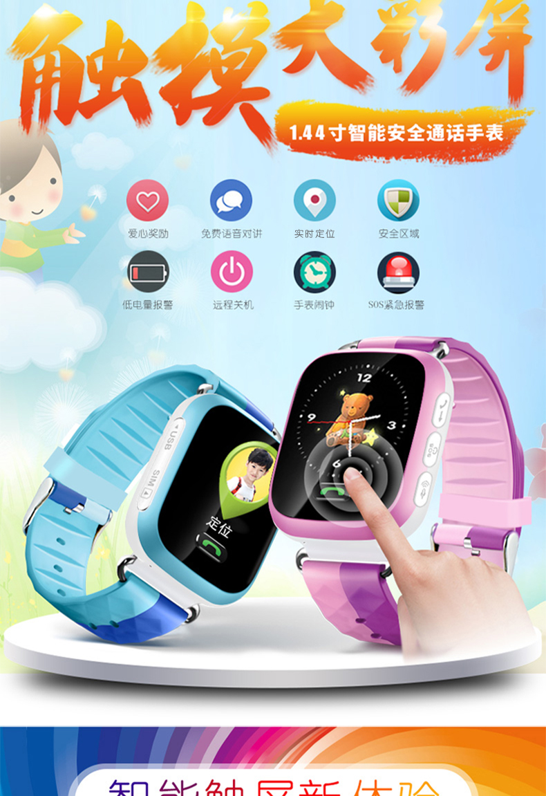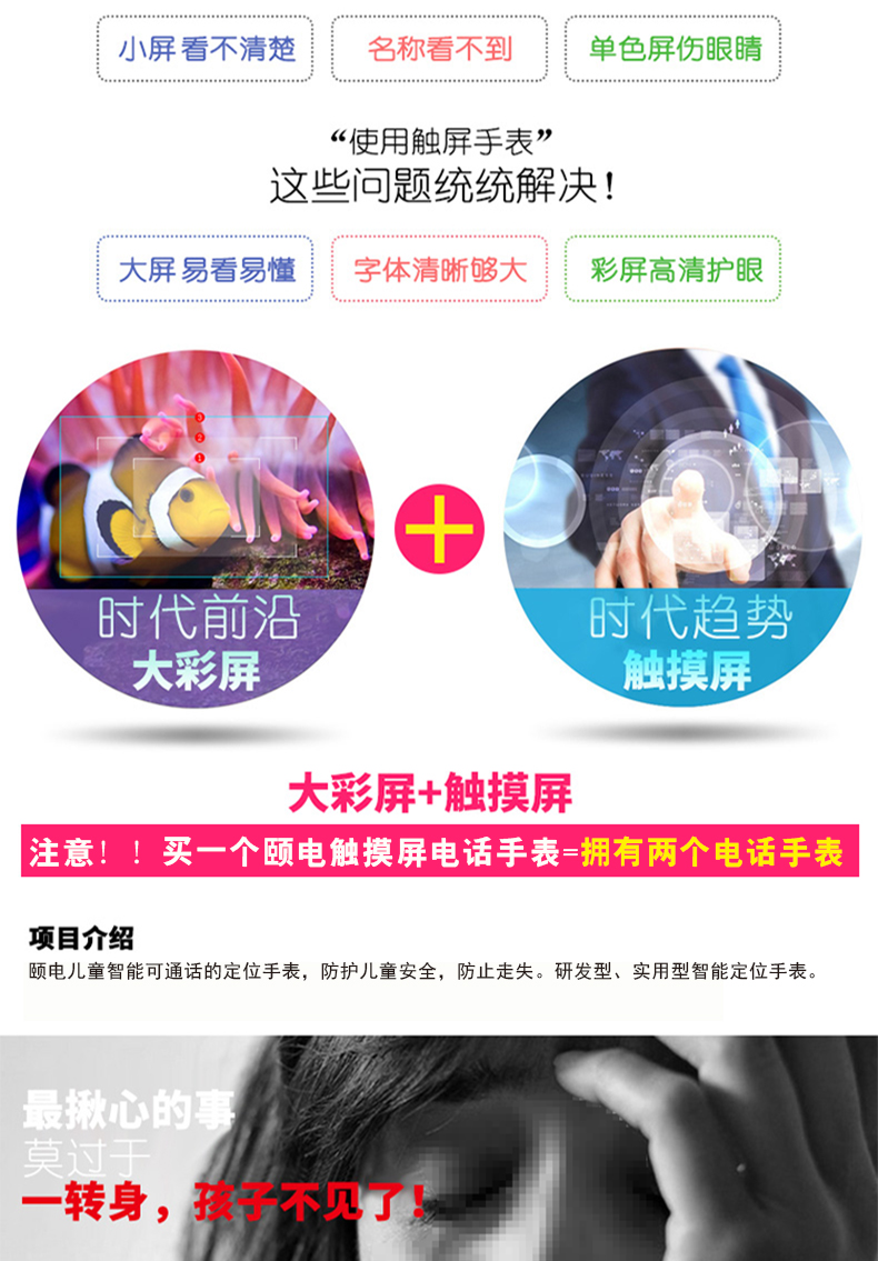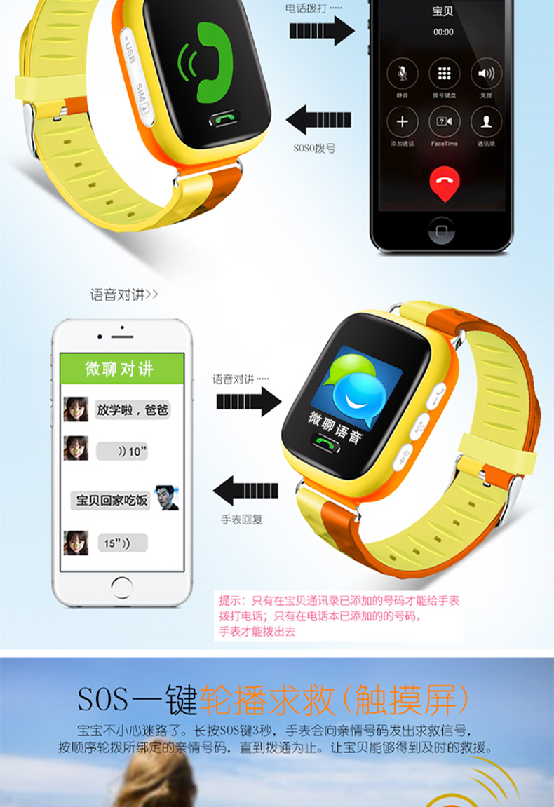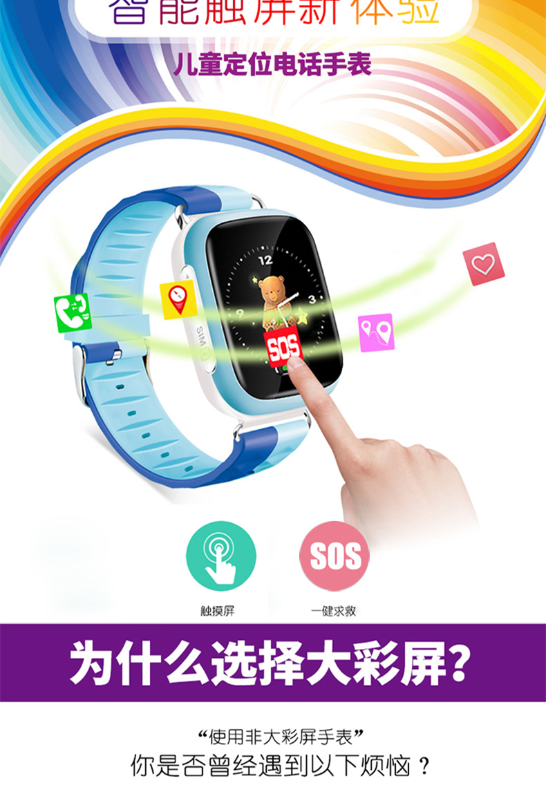 1、1.44寸觸摸彩屏,一鍵SOS求救,雙重定位;