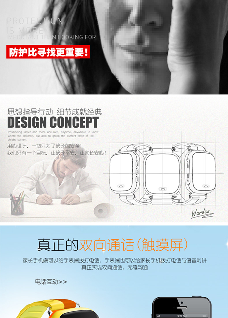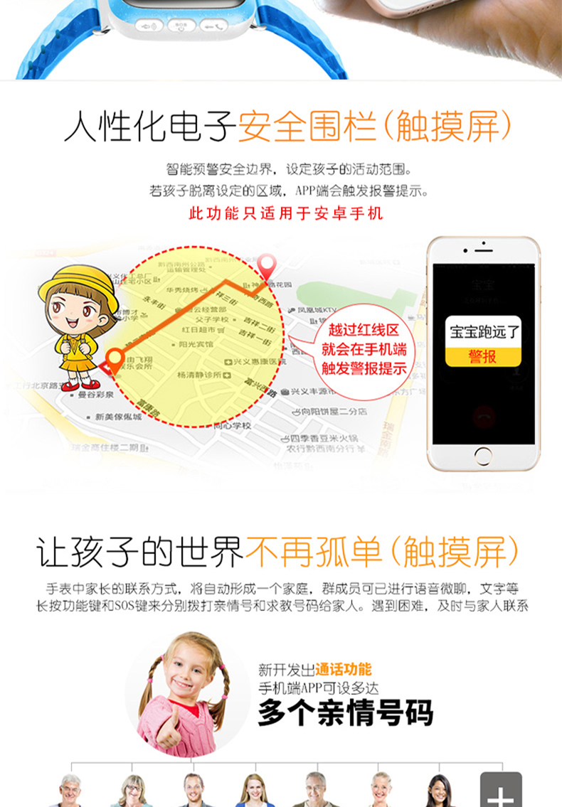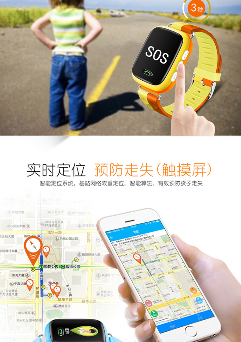 3、觸摸屏精準GPS定位,實時追蹤,實時定位,預防走失,