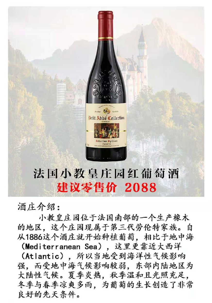 法國原瓶原裝進口小教皇莊園紅葡萄酒