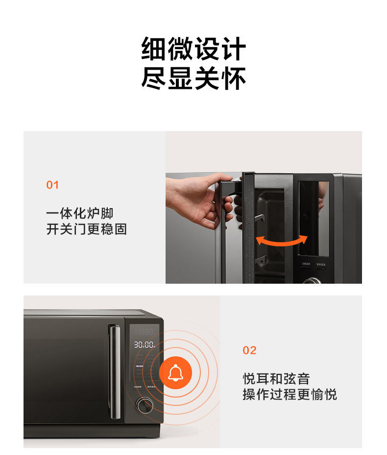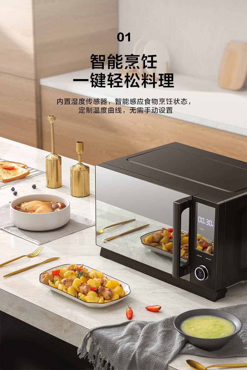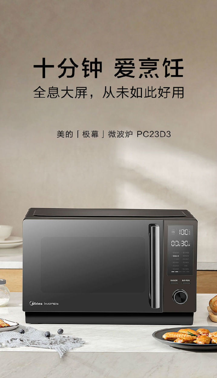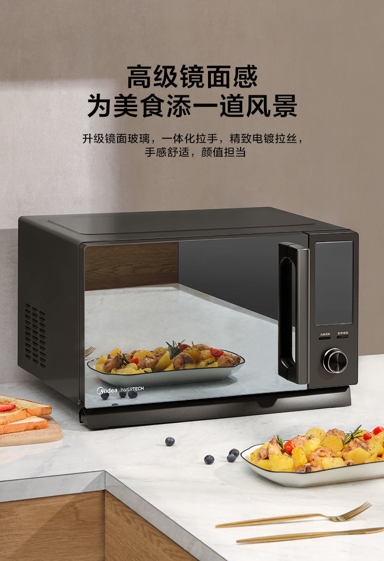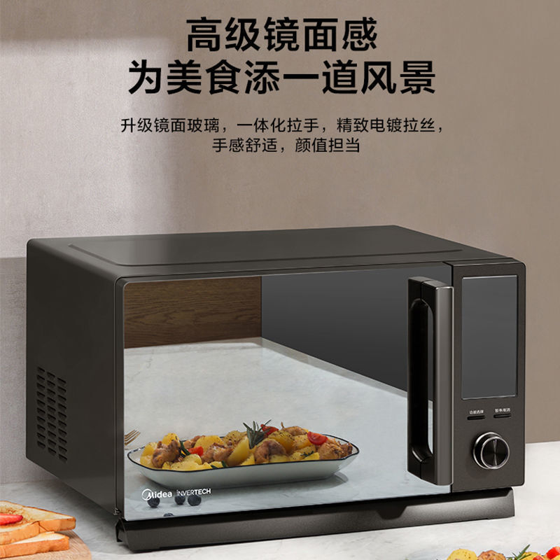 美的極幕 高端旗艦不銹鋼內膽智能變頻微波爐光波爐烤箱電烤箱微蒸烤一體機家用PC23D3 黑色