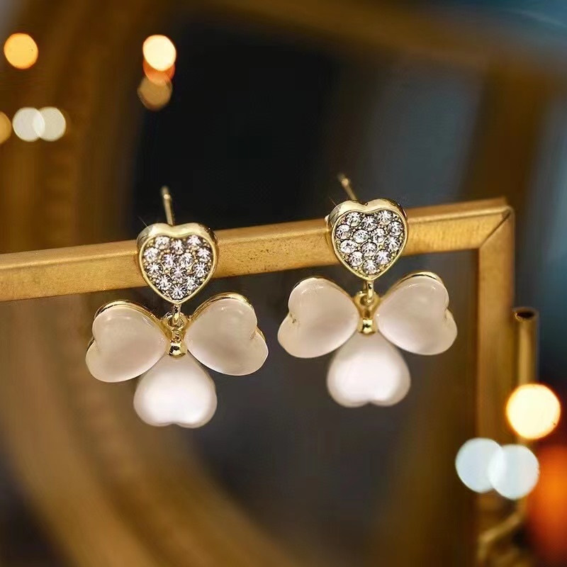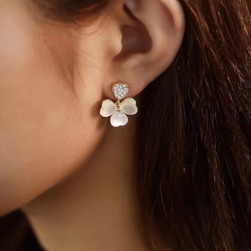 CaldiceKris(中國CK)簡約氣質(zhì)貓眼石四葉草耳釘
