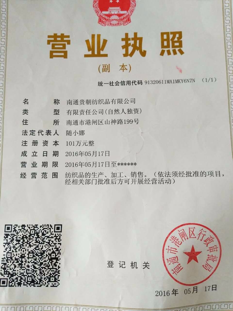 • 店鋪名稱:南通貴朝紡織