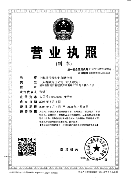 - 經營范圍:真空類、非真空類不銹鋼保溫容器(保溫杯、瓶、壺)、家用器皿、酒店用品、不銹鋼廚具的銷售