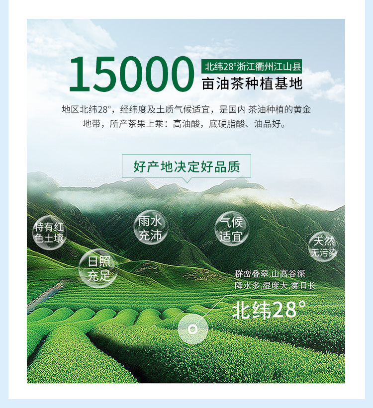高煙點(diǎn)少油煙、單不飽和脂肪酸高、營(yíng)養(yǎng)價(jià)值豐富、東方液體黃金、高端食用油