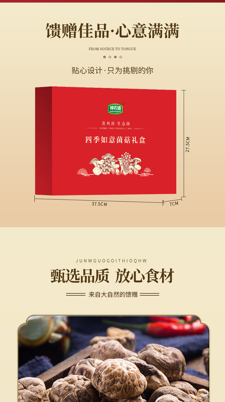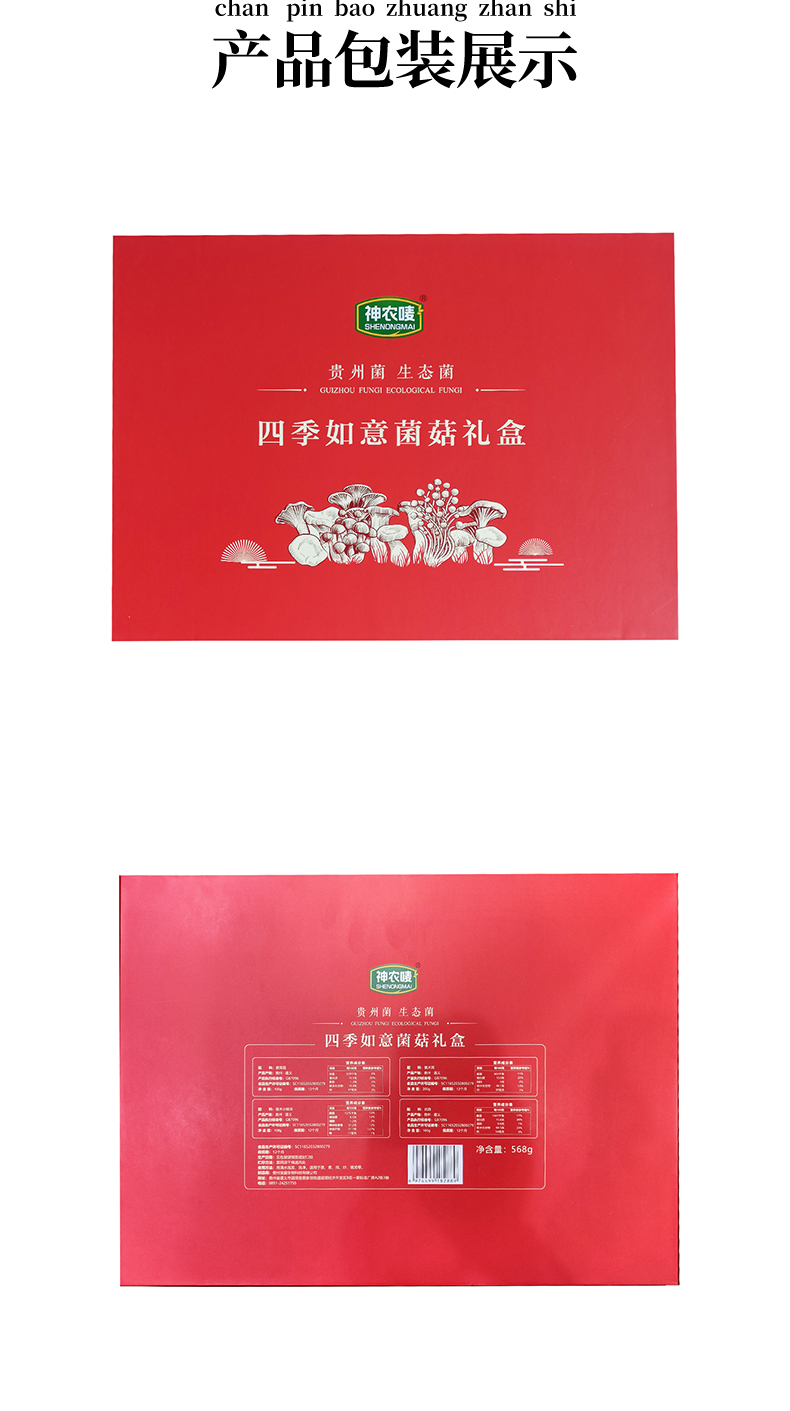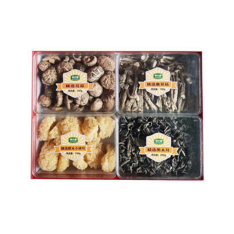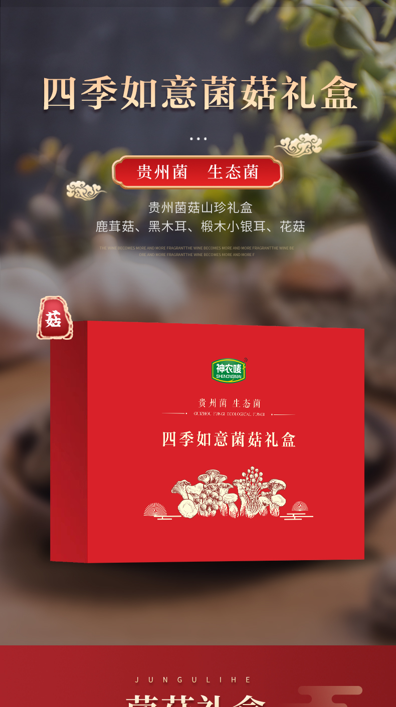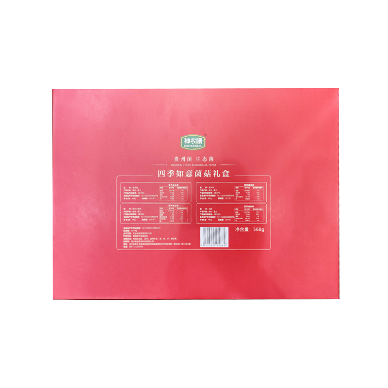 貴州精選菌菇禮盒、禮盒內容物(鹿茸菇100g,黑木耳200g,椴木小銀耳108g,花菇160g) 紅色大氣手提禮盒裝、送禮更體面