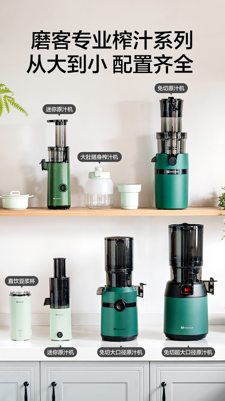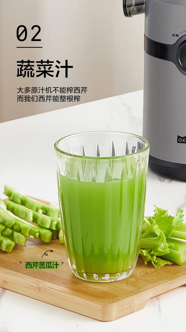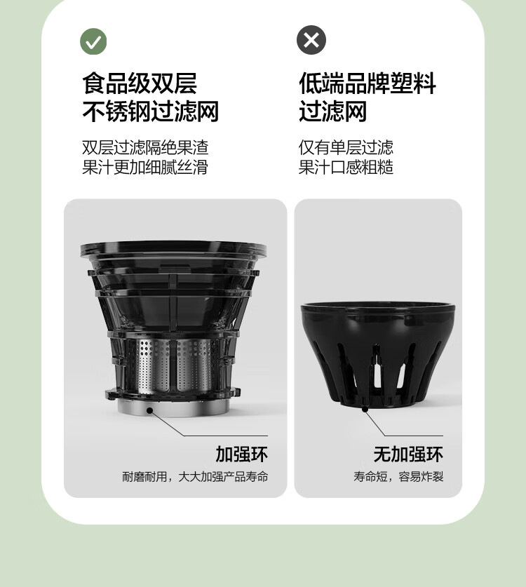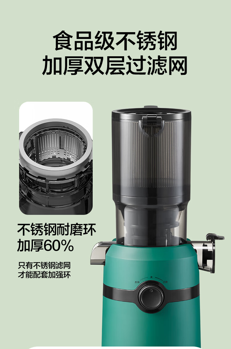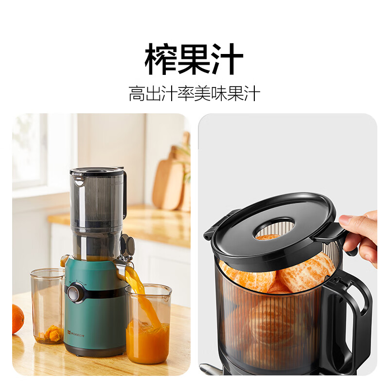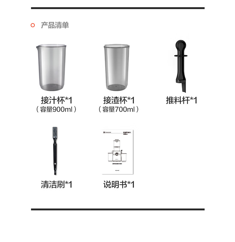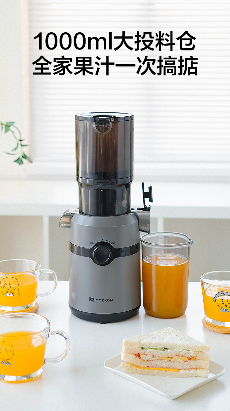 10.8cm大口徑,1L大容量料桶,可以一次榨更多水果,不用切,整顆榨,大塊投放真方便,不切小塊防氧化又安全