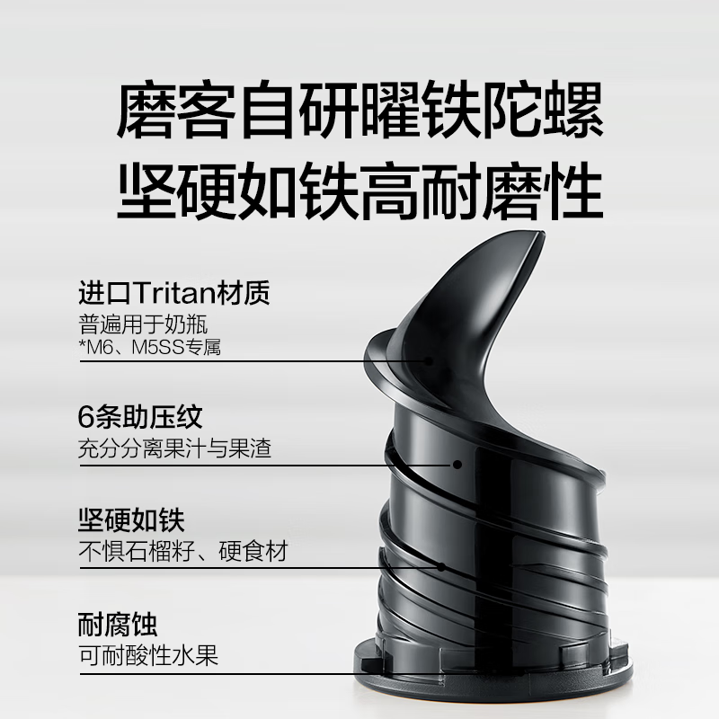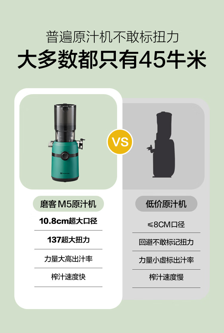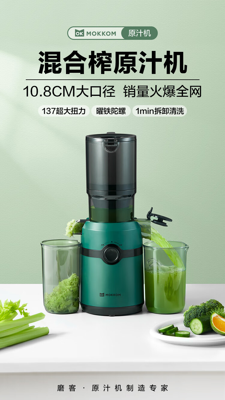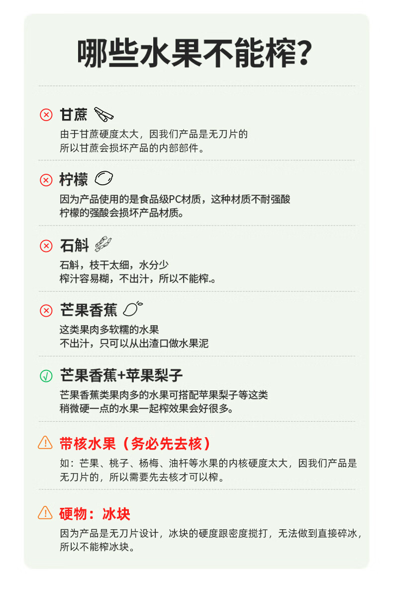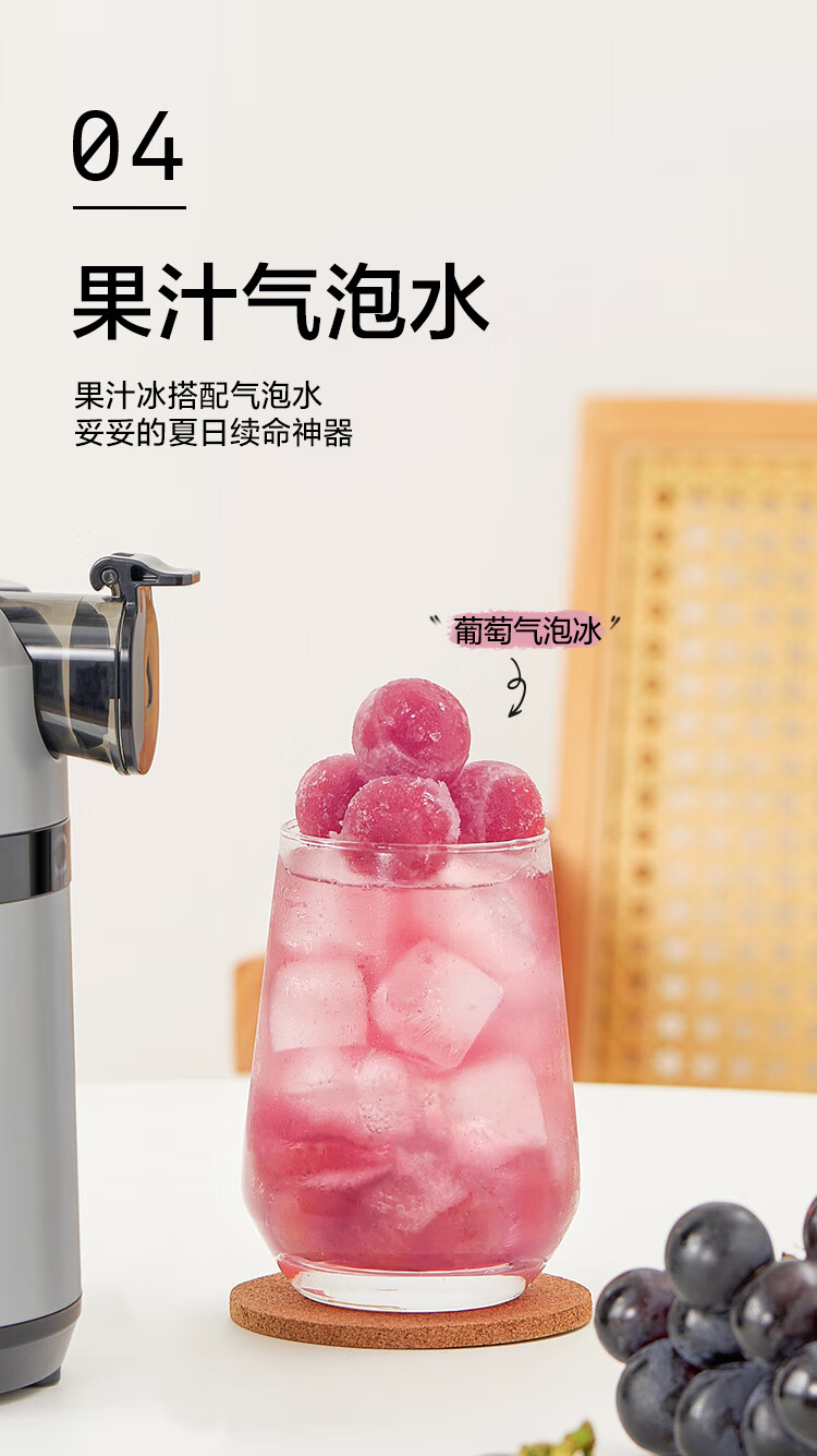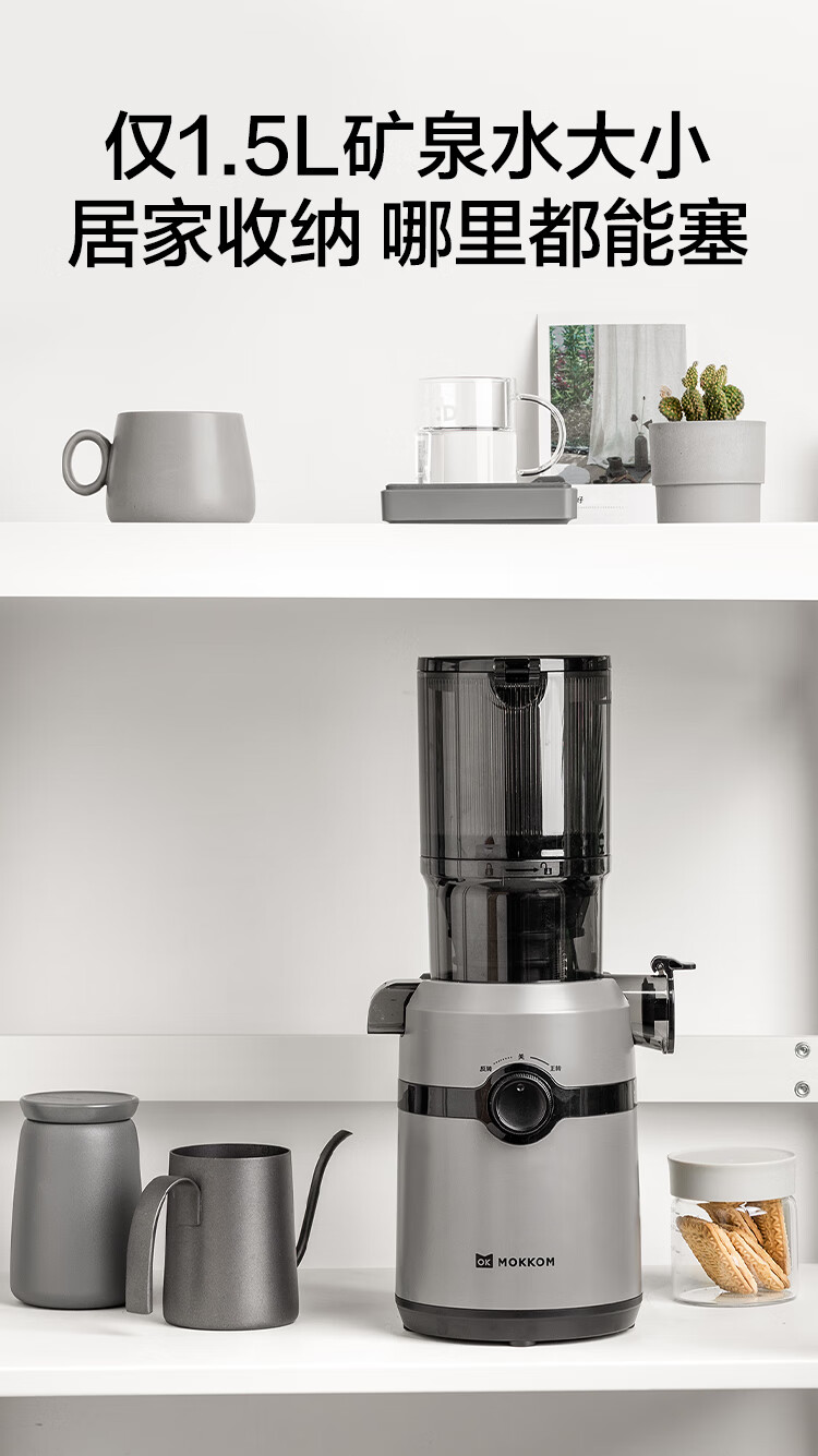 10.8cm大口徑,1L大容量料桶,可以一次榨更多水果,不用切,整顆榨,大塊投放真方便,不切小塊防氧化又安全