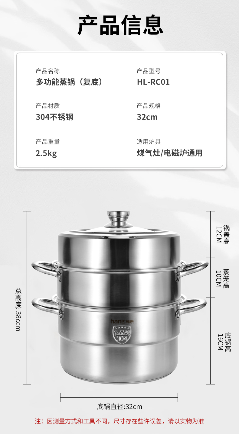 食品級不銹鋼材質,耐用不生銹,一鍋多功能蒸煮涮火鍋,秒變廚神