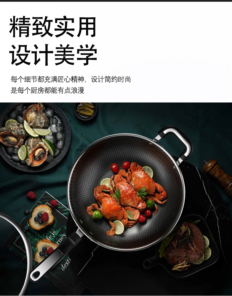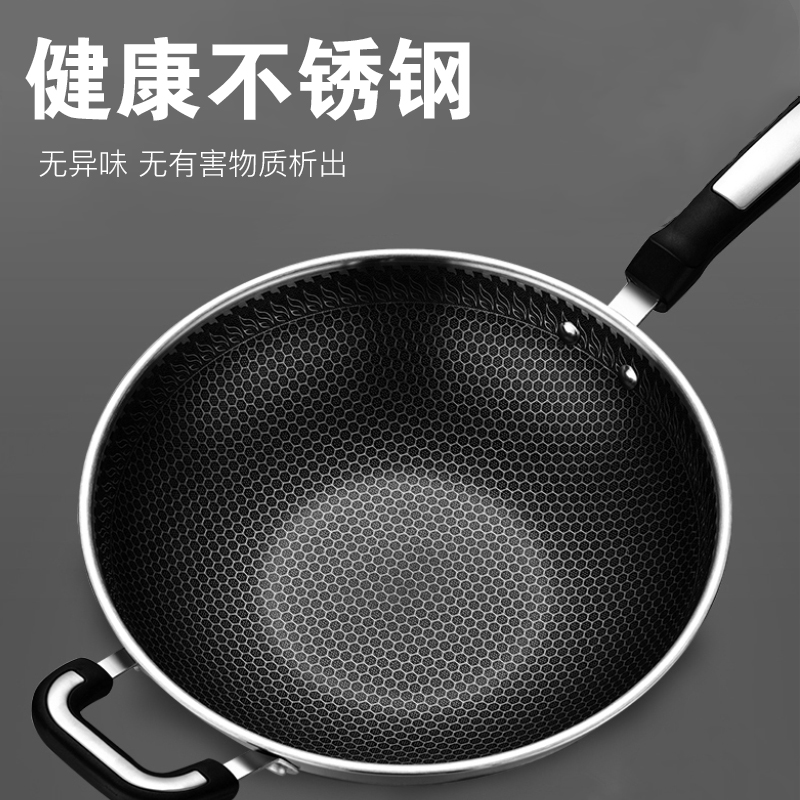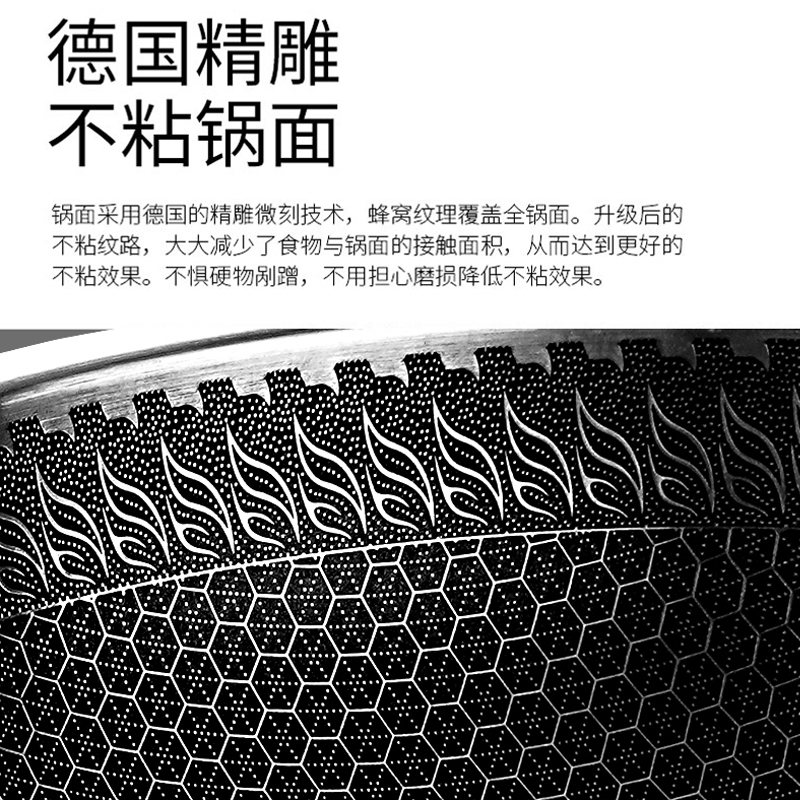 304雙面精雕微刻紋理、少油煙、 不易粘鍋、輕松擦洗、受熱均勻,電磁爐煤汽灶通用
