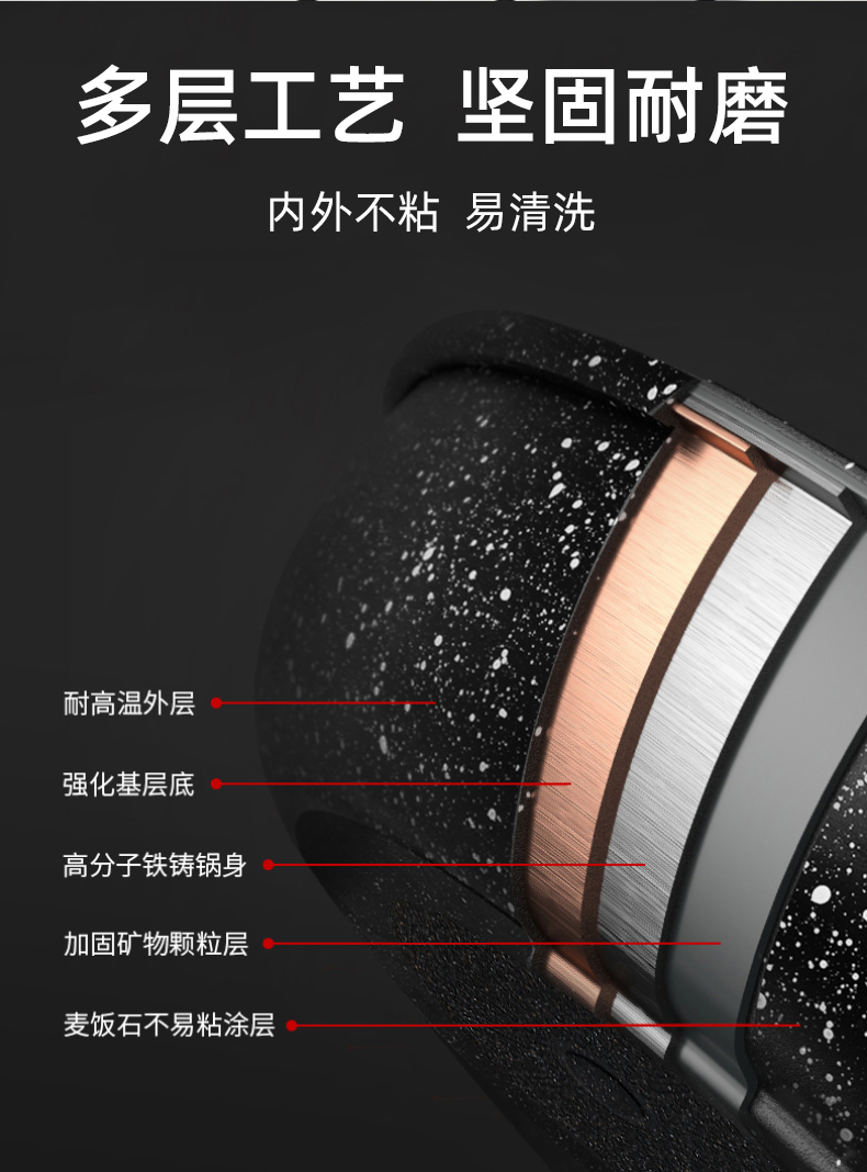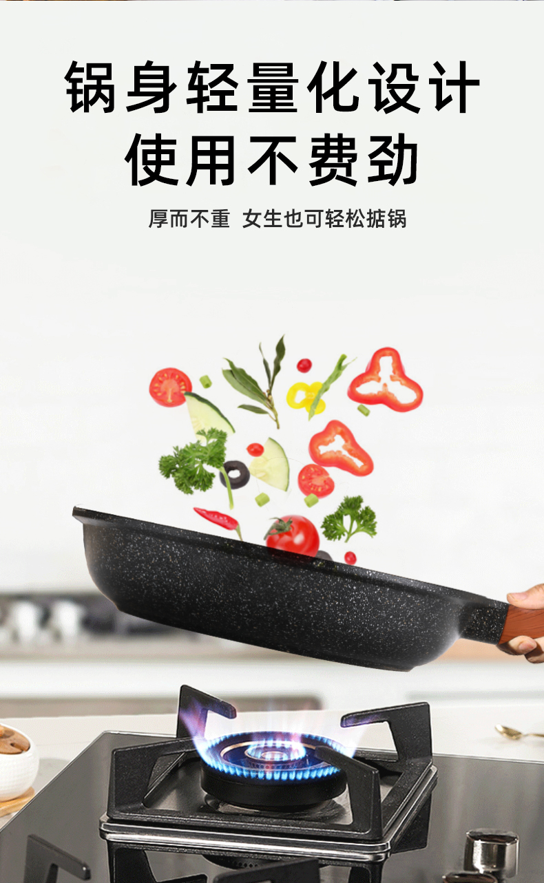 復合底快速導熱省氣省電,有質感、健康材質,不粘煎鍋,好用易清洗