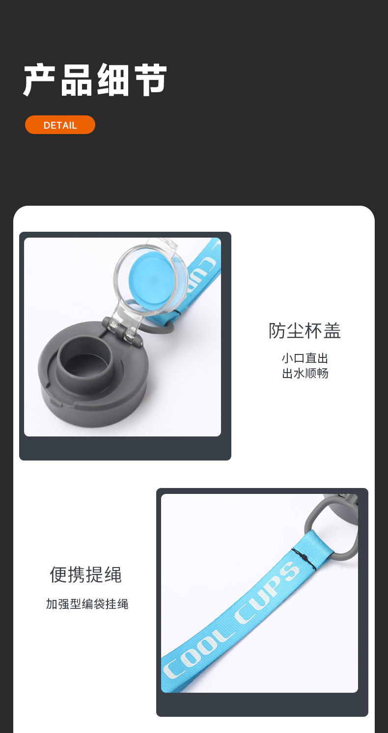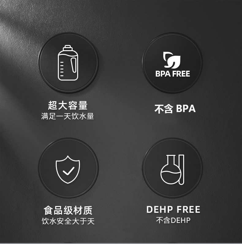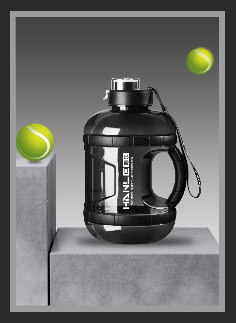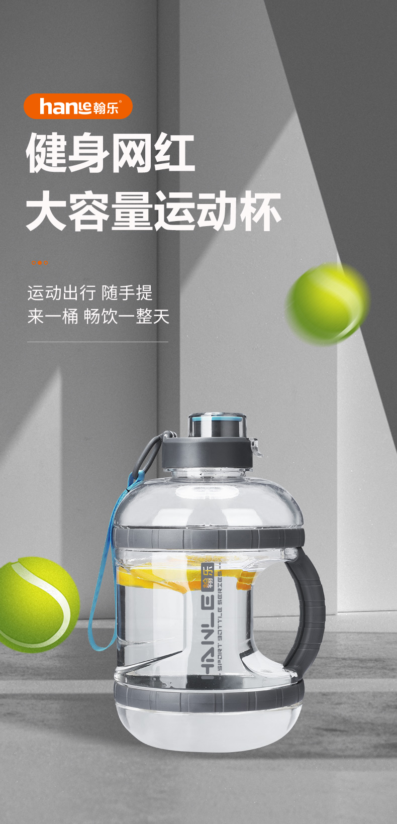 健身網(wǎng)紅大容量運動杯,運動出行,便攜可拎可手提,加強型掛繩,硅膠圈密封,密封防漏,超大容量滿足一天飲水量,杯身采用進口食品級PC材質(zhì),通透純凈不含BPA,高抗耐摔,耐溫性高,一通水量約等于500ml礦泉水5瓶,2300ml,25cm*15cm,兩種飲水方式,小口慢飲,大口暢飲