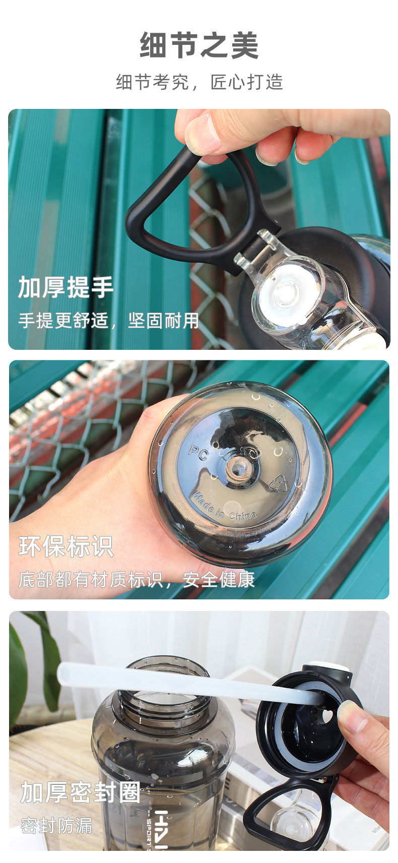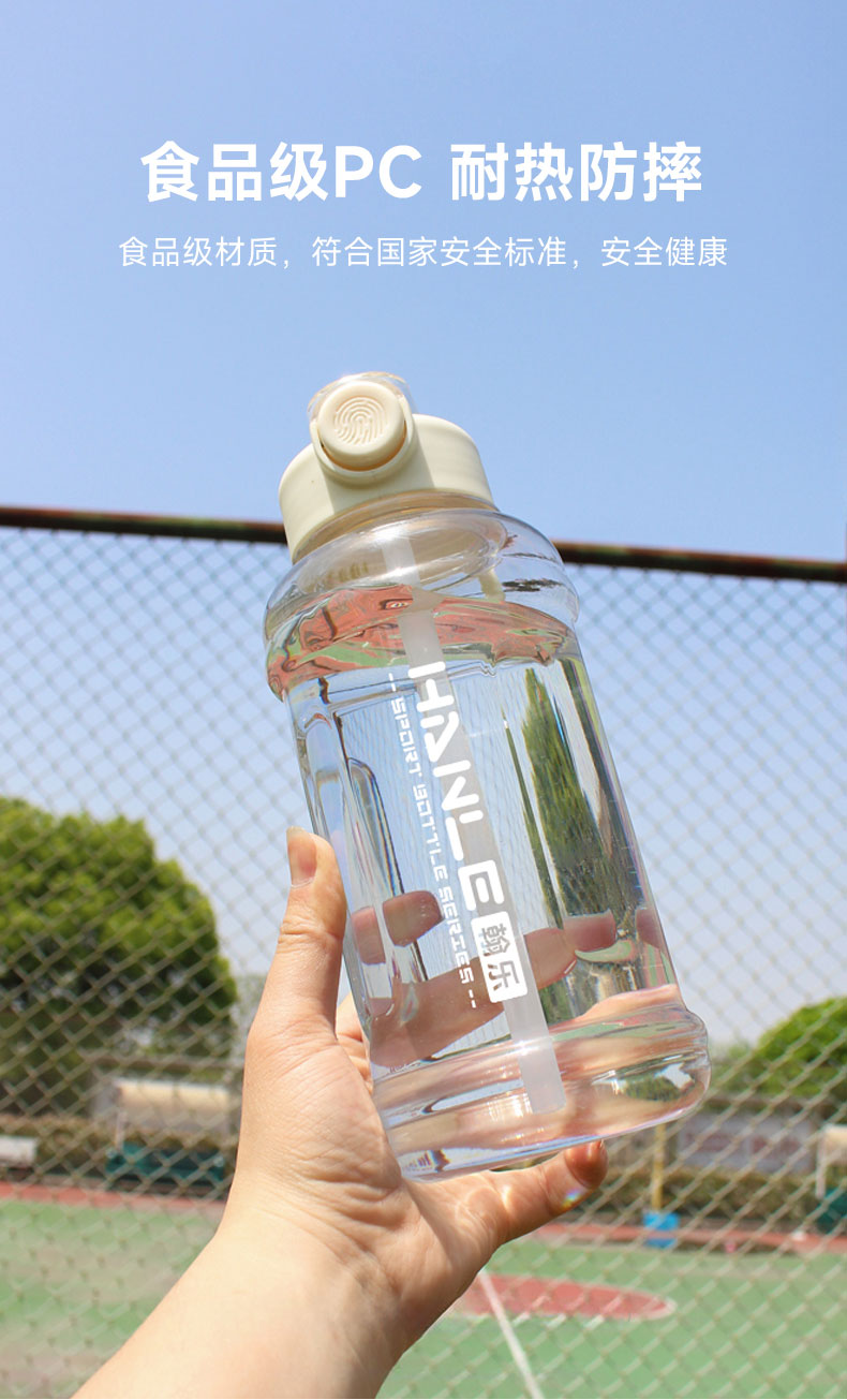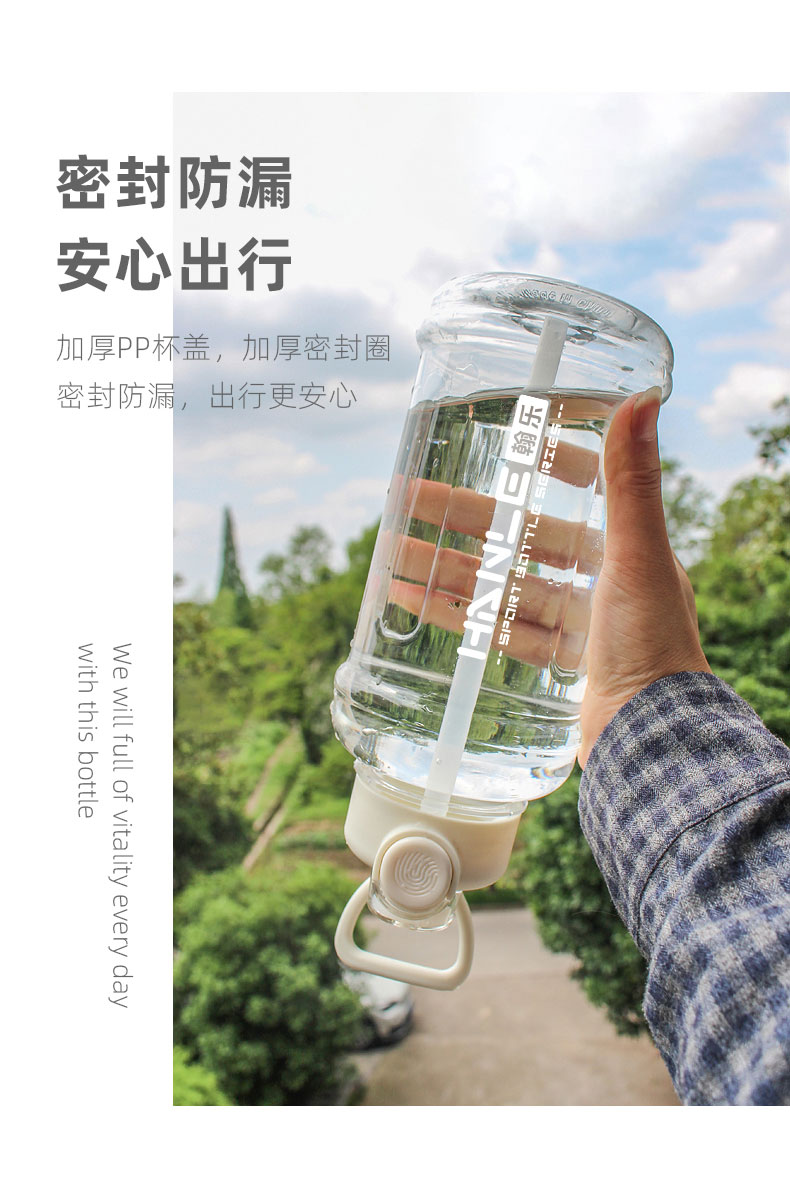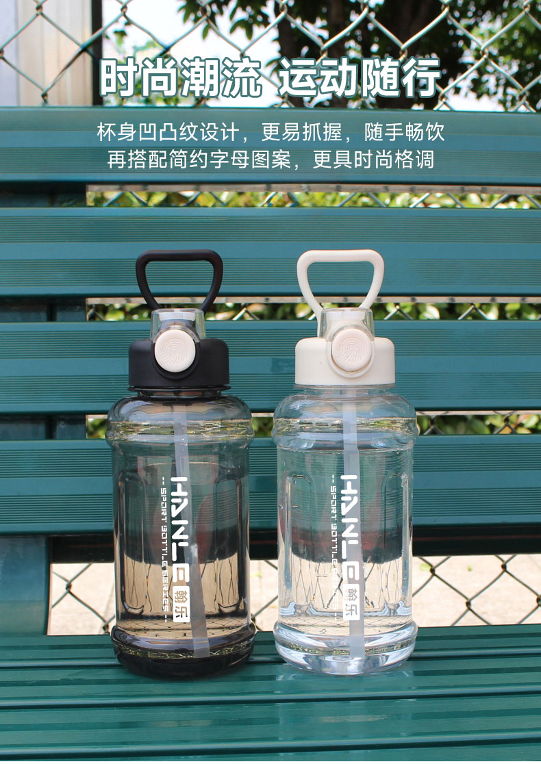 雙飲運動水壺,簡約時尚,運動隨行,1.25L大容量,一蓋兩用,密封防漏,耐熱防摔,杯身凹凸紋設計,更易抓握,一鍵彈蓋,單口集成吸飲和直飲,食品級PC(杯體)食品級PP(杯蓋、吸管)食品級硅膠(密封圈),加厚提手,手提更舒適,約10cm*25cm