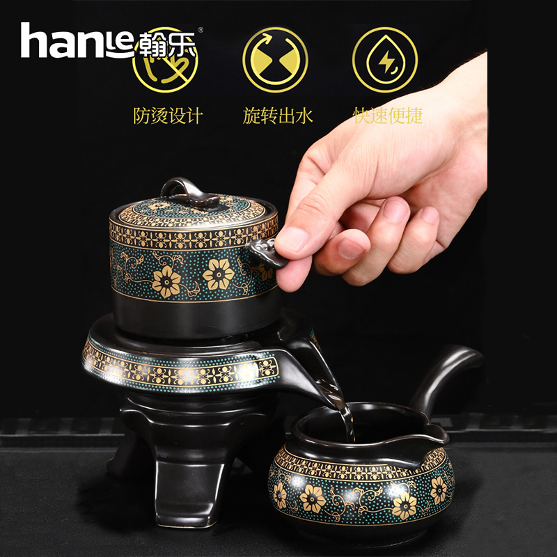翰樂茶具半自動時來運轉泡茶神器描金高端輕奢HL-SMSH石墨生花9件套